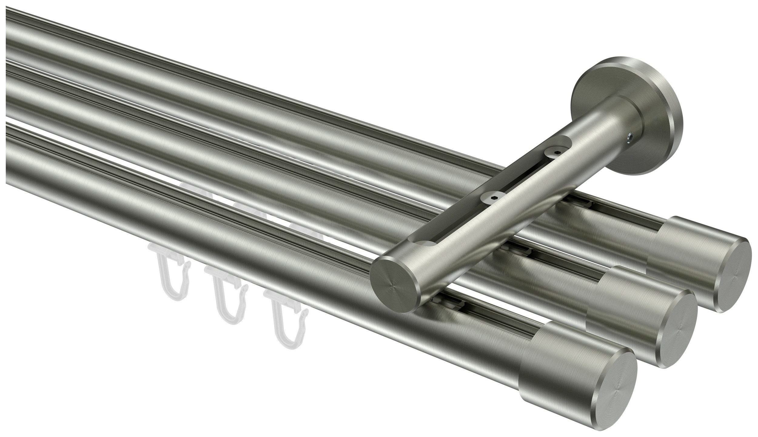 Lieferumfang | Endstücke "Kappe" Edelstahl-Optik Faltengleiter mit Faltenlegehaken Innenlaufprofil 100 cm Edelstahl-Optik Träger 1-3-läufig Langloch Edelstahl-Optik inkl. Befestigungsmaterial |