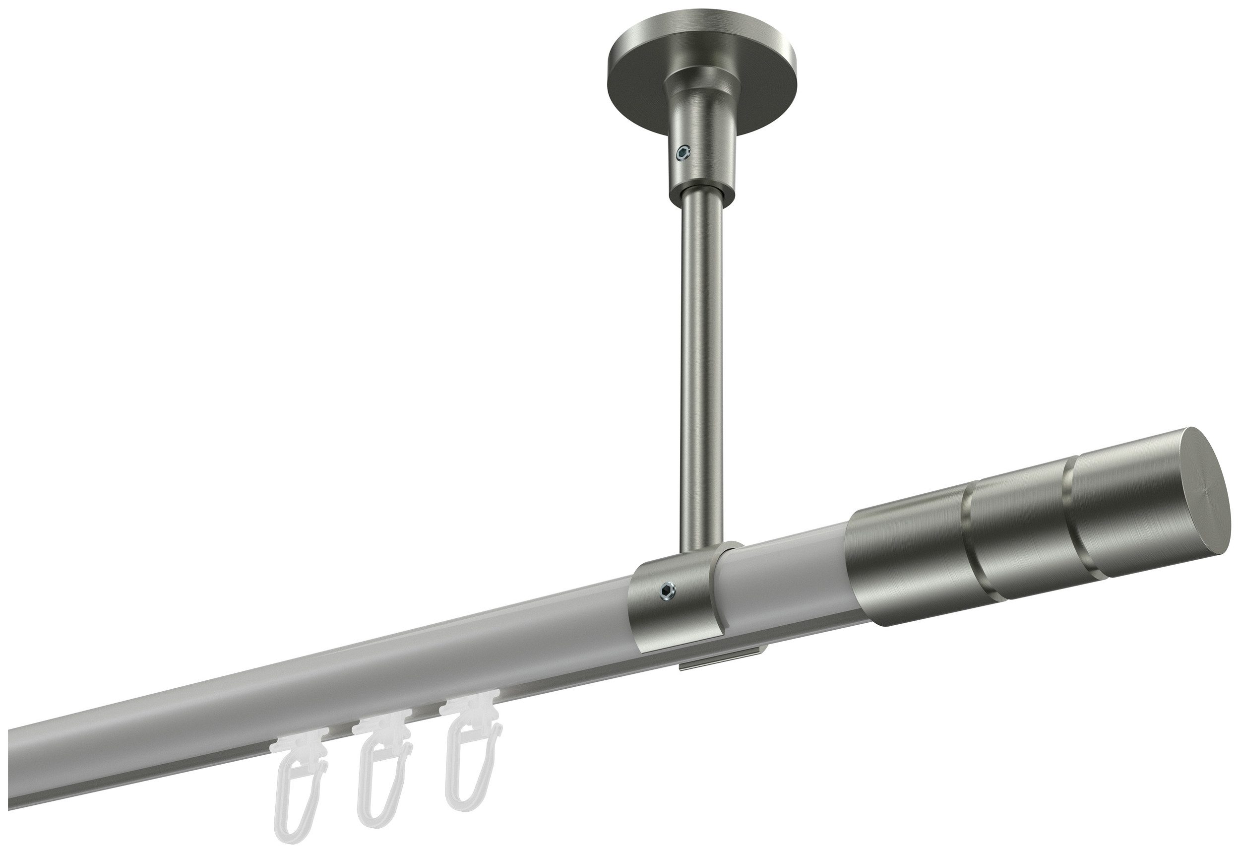 Lieferumfang | Deckenträger 1-läufig Edelstahl-Optik inkl. Befestigungsmaterial Endstücke "Rillenzylinder" Edelstahl-Optik Faltengleiter mit Faltenlegehaken Innenlaufprofil 100 cm Weiß |