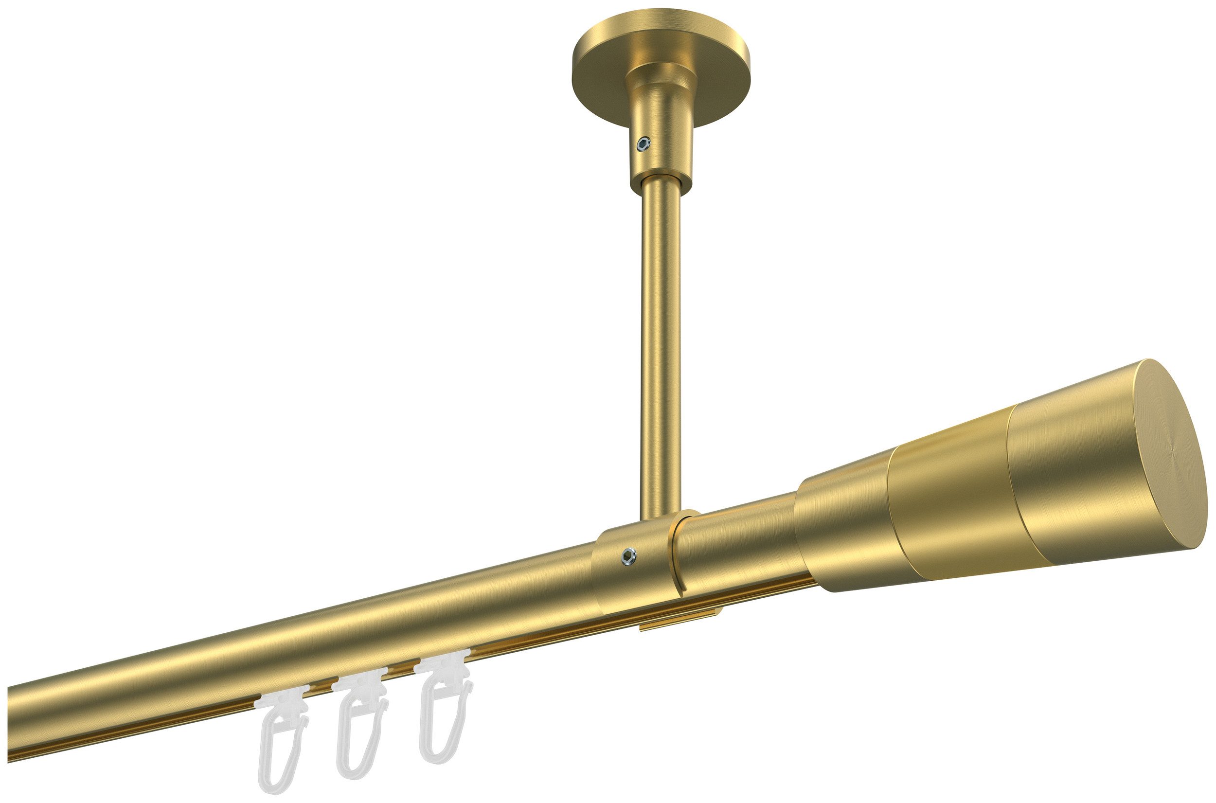 Lieferumfang | Deckenträger 1-läufig Messing-Optik inkl. Befestigungsmaterial Endstücke "Konus / Bicolor" Messing-Optik/Satin-Gold Faltengleiter mit Faltenlegehaken Innenlaufprofil 100 cm Messing-Optik |