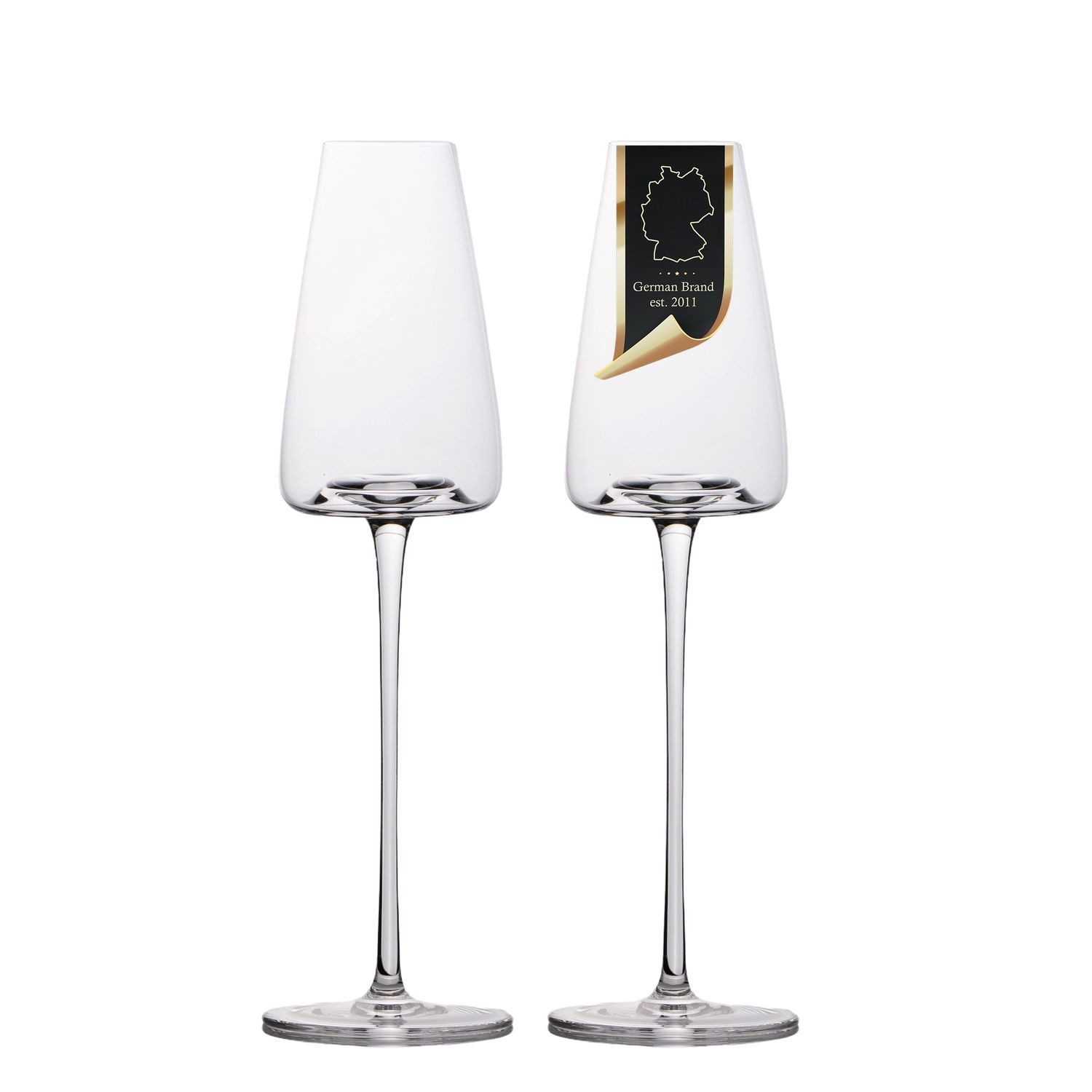 Feiern Sie das Leben mit unserem exquisiten 2er Set Champagnergläser aus stoßfestem Kristallglas. Diese speziell entwickelten Gläser maximieren den Genuss und bringen die Feinheiten von Champagner, Sekt und Prosecco optimal zur Geltung.