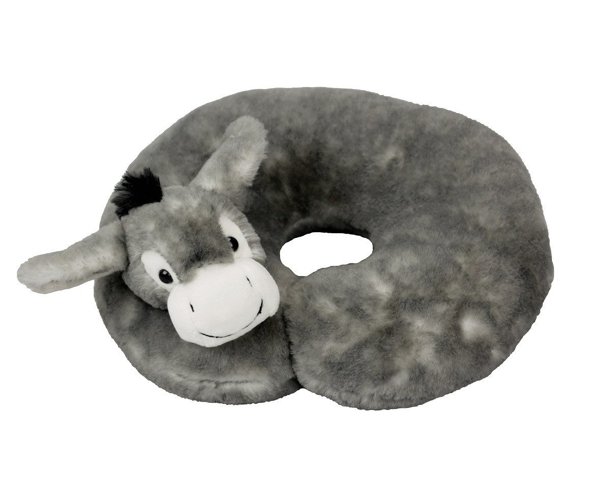 INWARE Nackenkissen Esel grau 30 x 25 cm, kuschelweicher Plüsch, maschinenwaschbar bis 30°C