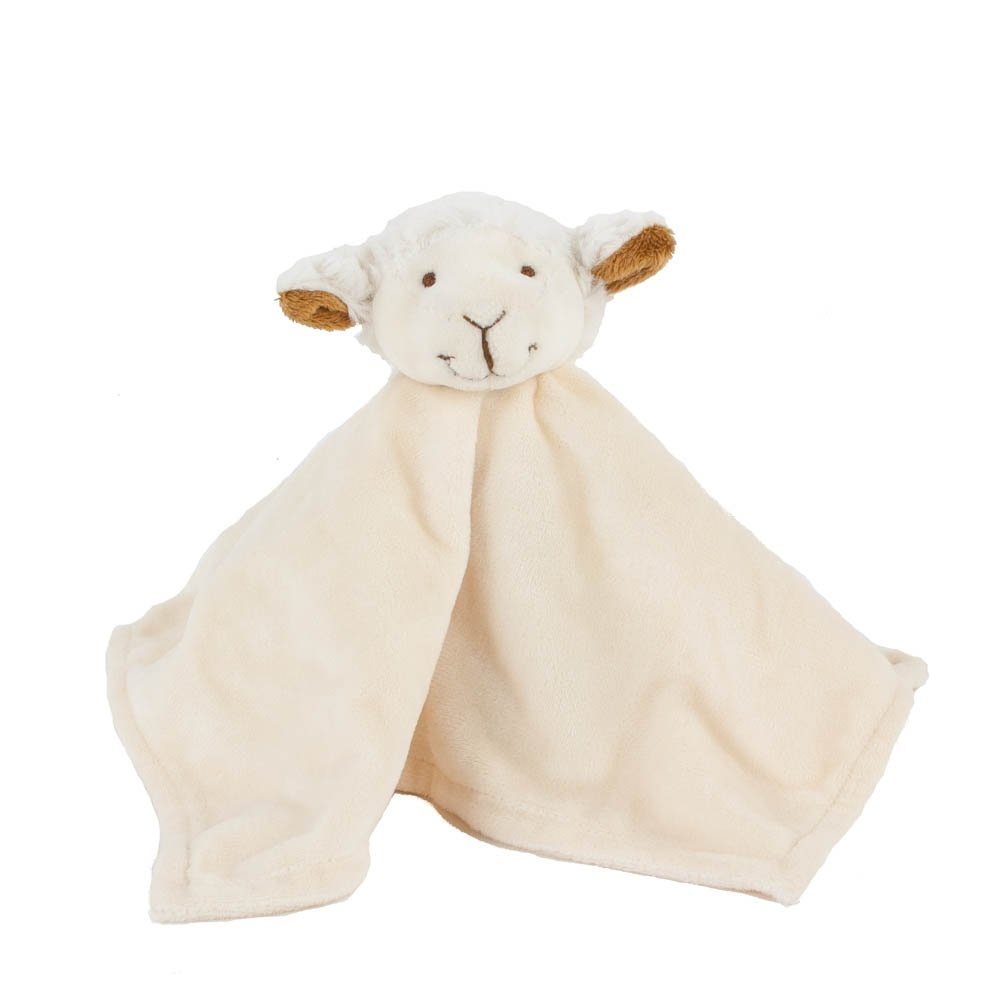 INWARE, Lämmchen-Schmusetuch mit braunen Ohren, 24 cm, kuschelweicher Plüsch, creme, frei von Schadstoffen, waschbar bis 30 Grad.