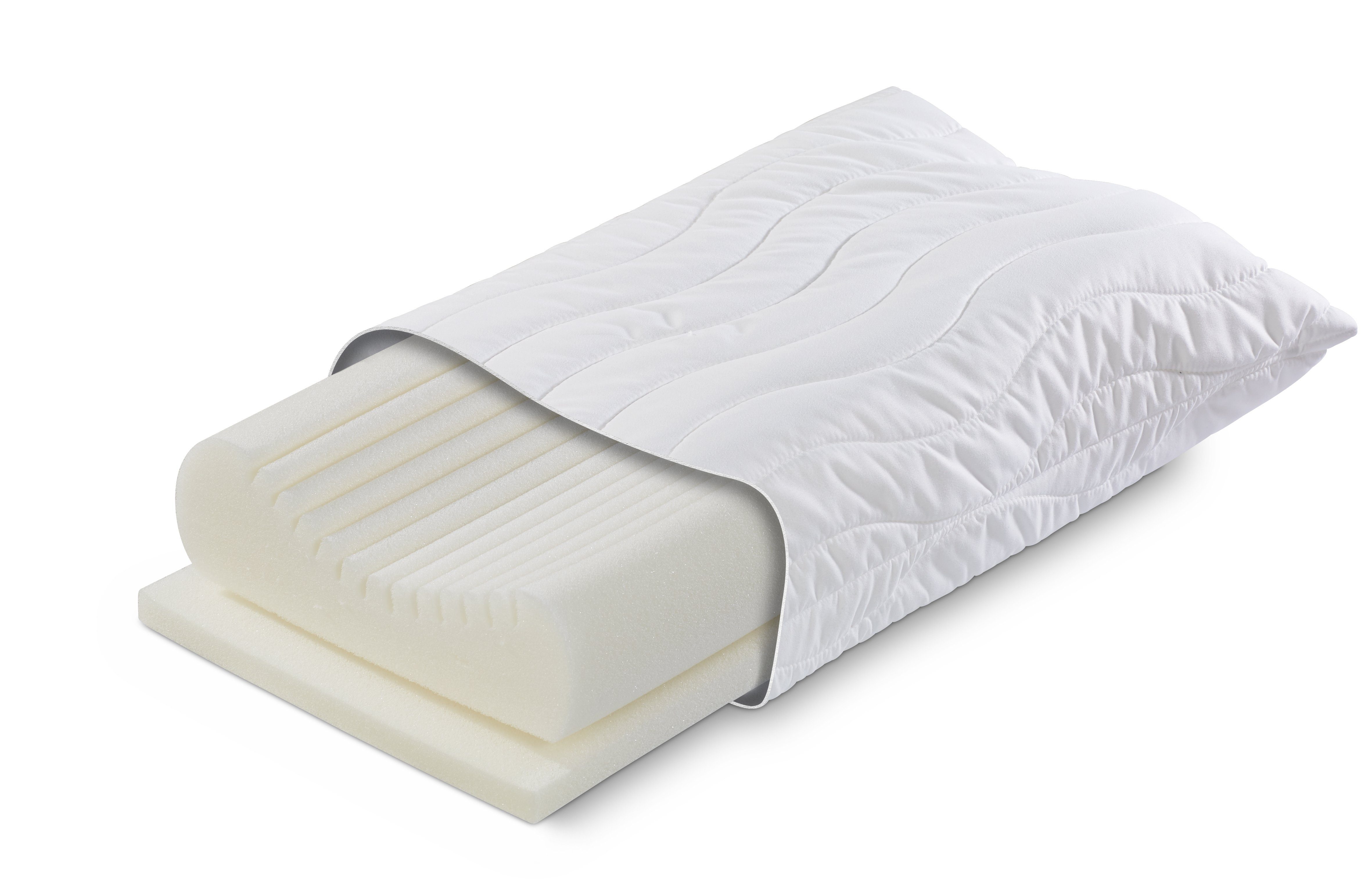 Der Kern aus Komfortschaum ist mit einem Lamellenkonturschnitt versehen, welcher die Anschmiegsamkeit der Kopf- und Nackenpartie verbessert.