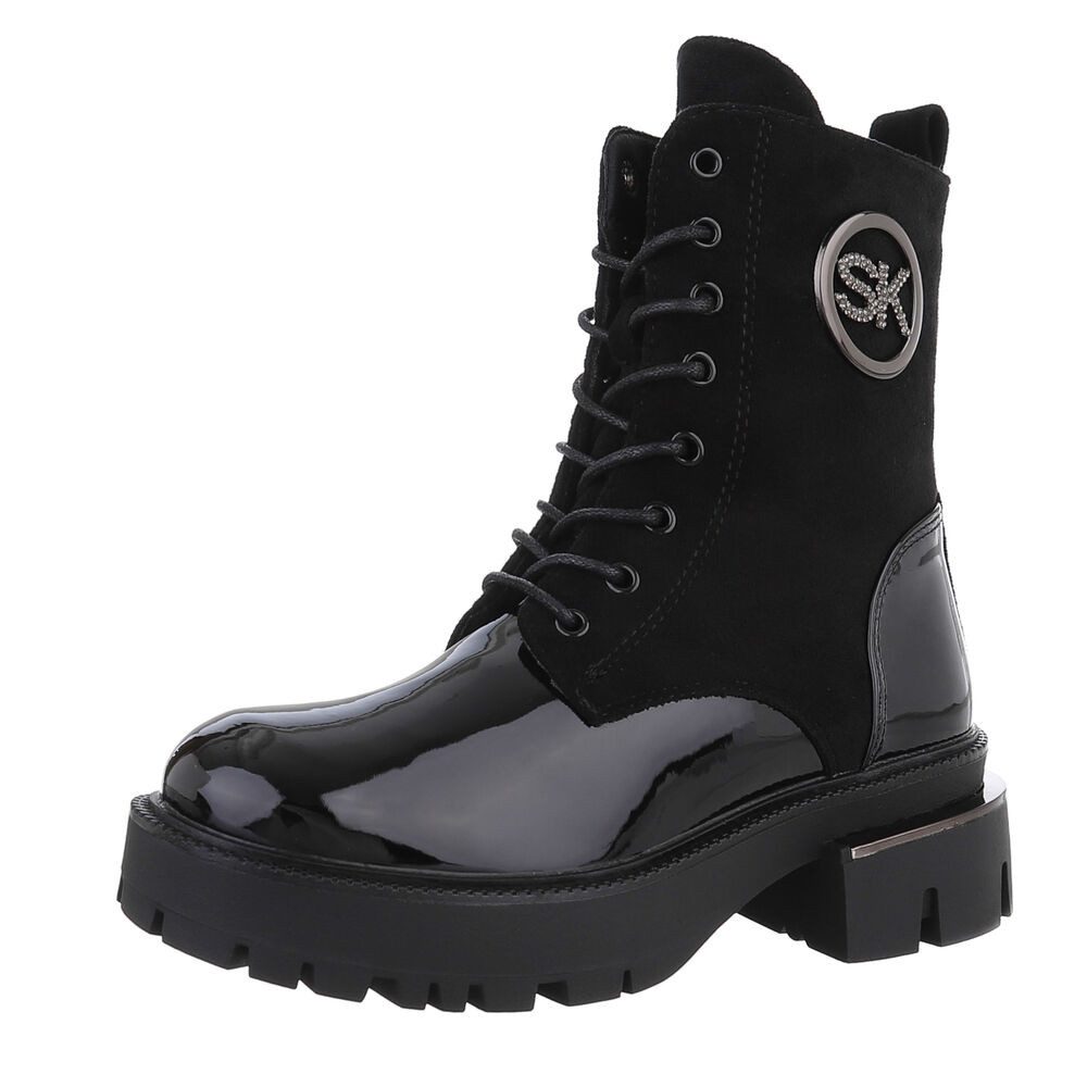 Diese Schnürstiefeletten vereinen zeitlose Eleganz mit einem trendbewussten Design und sind die perfekte Ergänzung für jedes Outfit. Mit der Kombination aus glänzendem Kunstleder und Wildlederoptik wirken sie luxuriös, ohne aufdringlich zu sein. Der kontrastreiche Materialmix verleiht den Schuhen eine aufregende, aber harmonische Wirkung. Diese Stiefeletten sind ein Must-Have für alle, die auf der Suche nach einem stilvollen und zugleich bequemen Schuh sind. Der seitliche Reißverschluss ermöglicht ein schnelles An- und Ausziehen, während die Schnürung eine perfekte Anpassung an den Fuß gewährleistet. Die weiche Fütterung sorgt für angenehme Wärme an kühleren Tagen. Die robuste Sohle bietet stabilen Halt und Komfort bei jedem Schritt, sei es auf städtischen Straßen oder bei längeren Spaziergängen. Der mittelhohe Absatz streckt das Bein subtil und unterstreicht den femininen Look, ohne den Tragekomfort zu beeinträchtigen. Luxuriöse Details wie die goldenen Akzente verleihen den Stiefeletten einen besonderen Charme. Sie lassen sich sowohl lässig zu Jeans als auch elegant zu Kleidern kombinieren und passen sich somit jeder Situation an. Die strapazierfähigen Materialien garantieren Langlebigkeit, während die komfortable Sohle dafür sorgt, dass du den ganzen Tag über bequem unterwegs bist. Diese Stiefeletten sind der perfekte Mix aus Stil und Funktionalität und begleiten dich durch den Alltag oder zu besonderen Anlässen. Der luxuriöse Look und die bequeme Passform machen sie zu einem unverzichtbaren Teil deiner Garderobe.