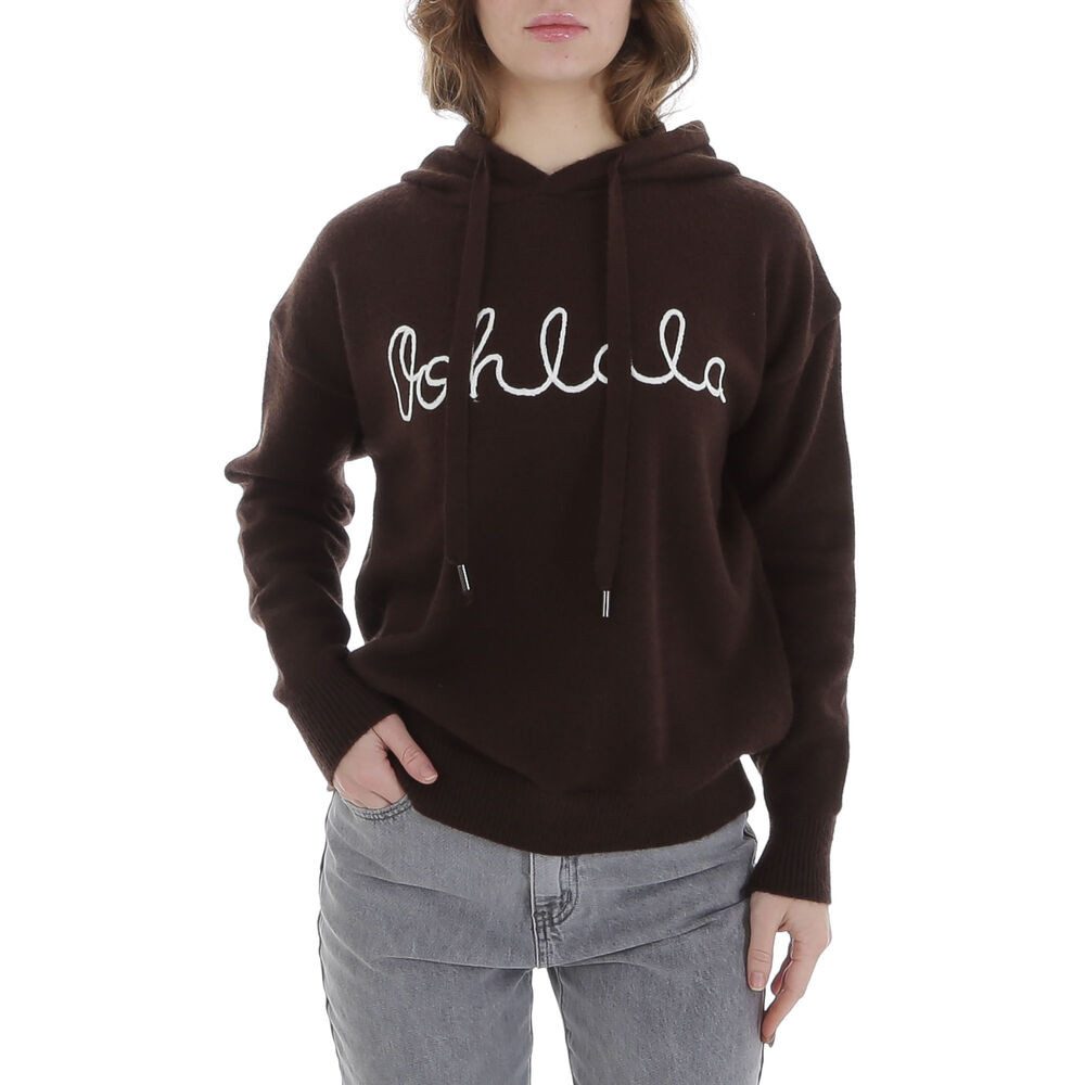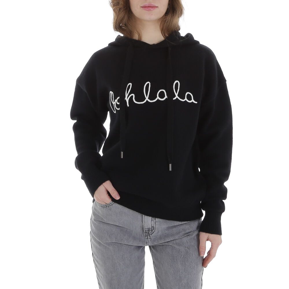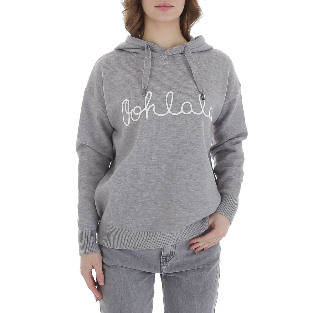 Besondere Merkmale | Kapuze Textprint Stretch Strickpullover in Grau |