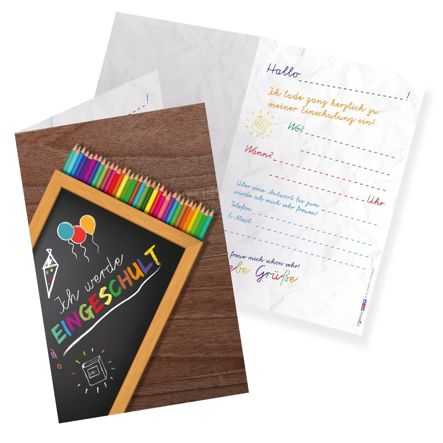 itenga Grußkarten itenga 12x Klappkarte Einladungskarten Schulanfang Einschulung A6