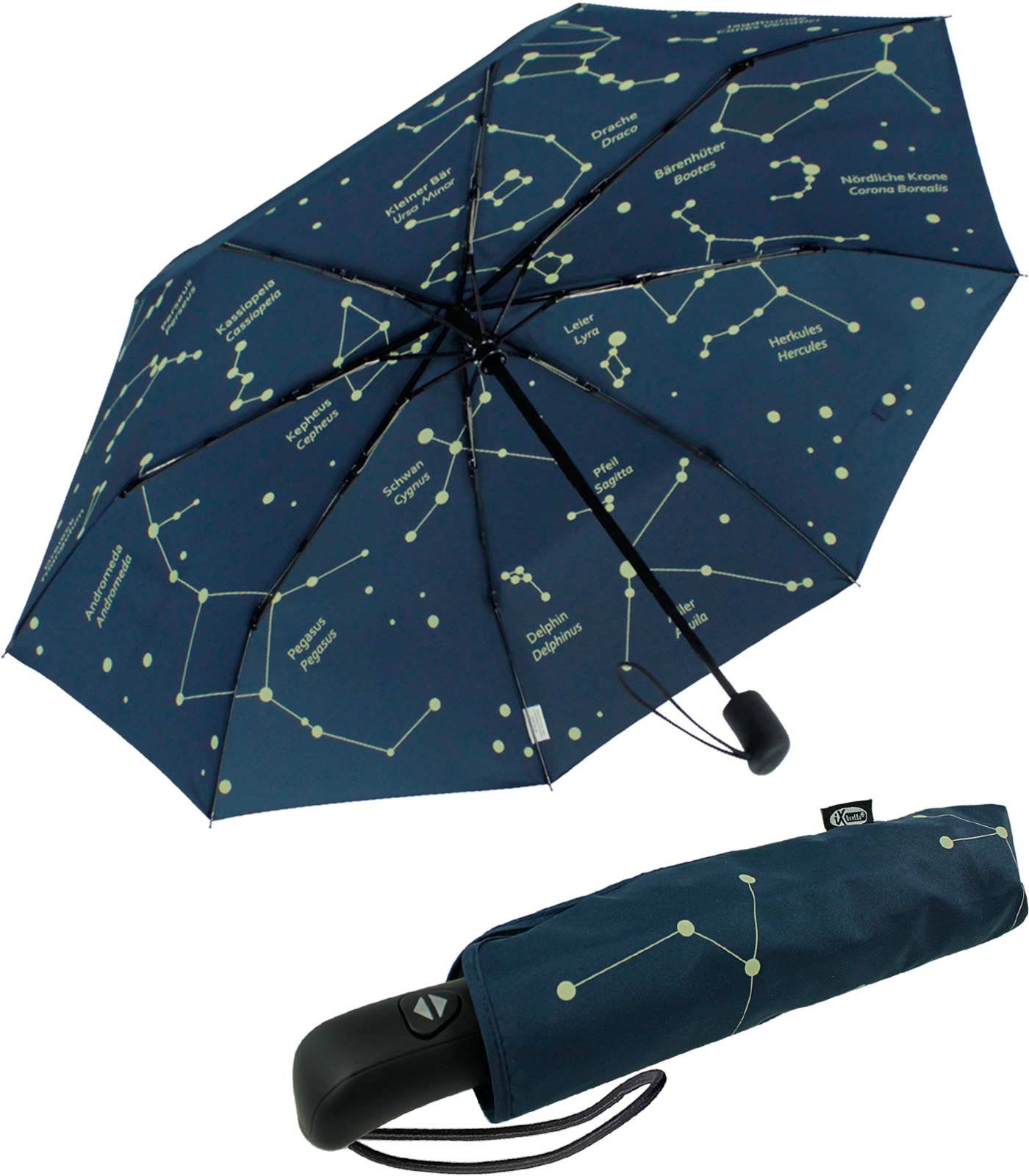 Der Sternenhimmel für unterwegs! Das tiefblaue Dach ist, anders als bei den meisten herkömmlichen Schirmen, von unten bedruckt. Geöffnet sehen Sie von unten den mitteleuropäischen