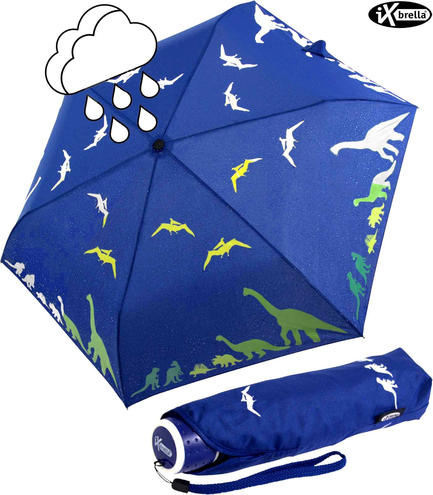 Regenschirm für Kinder mit Farbwechsel bei Nässe der Marke iX-brella, Typ Kinder-Taschenschirm mit Handöffner.