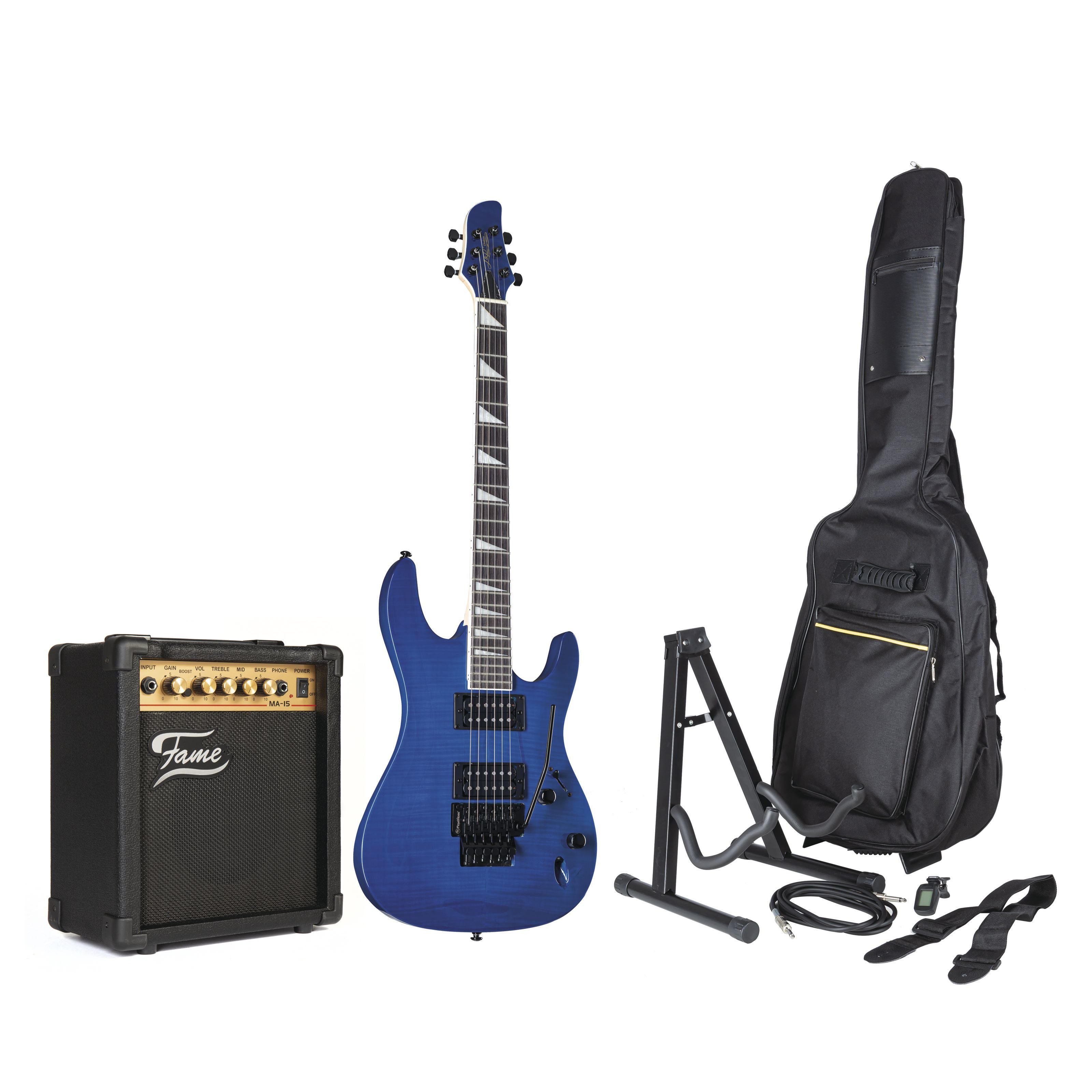 Lieferumfang | Ideal für Anfänger: Komplettes E-Gitarren-Set mit Verstärker und Zubehör für sofortigen Spielspaß. Hochwertige E-Gitarre: Double Cut Design, Linde-Korpus, Riegelahorn-Furnier, kompatibel mit Floyd Rose Tremolo. Kraftvoller Sound: Leistungsstarker Transistor Combo Verstärker für vielseitige Einsatzmöglichkeiten. Umfassendes Zubehörpaket: Inklusive Plektren, Gurt und Kabel – alles für den Start bereit. Stilvolles Design: See Thru Blue Finish, 22 Bünde, Alnico Humbucker Tonabnehmer, geschraubter Ahornhals. MS-ID: GIT269 Hersteller: J & D Bauform: Double Cut Korpus: Linde Decke: Riegelahorn-Furnier Binding: Natural Hals: 3-streifig, Ahorn Halskonstruktion: Geschraubt Halsprofil: ' C' Stärke am 1. Bund (mm): 21.7 Stärke am 12. Bund (mm): 23.5 Griffbrett: Composite Griffbrett-Typ: Bundiert Griffbrettradius in Zoll: 12 Mensur in mm: 648 Anzahl Bünde: 22 Griffbretteinlagen: Triangle Sattelmaterial: Kunststoff Sattelbreite in mm: 42.9 Breite am letzten Bund (mm): 57 Tonabnehmerbestückung: HH Tonabnehmerhersteller: J & Halstonabnehmer: Alnico Humbucker Mitteltonabnehmer: Nein Stegtonabnehmer: Alnico Humbucker Aktive Tonabnehmer: Nein Coil-Splitting: Nein Piezo-Tonabnehmer: Nein Elektronik: Passiv Schalter: 3-Weg Regler: Vol, Tone Brückentyp: Floating-Brücke Brücke: Floyd Rose Special Tremolo Saitenhalter: Nein Mechaniken: Druckguss Gurtpins: Standard Hardware: Black Stimmung ab Werk: Standard E Finish: Hochglanz Farbe: Blau Farbbezeichnung: See Thru Blue Gewicht Range (kg): 2,5 - 5 Saitenzahl: 6 Koffer enthalten: Nein Gigbag enthalten: Nein Zertifikat: Nein |