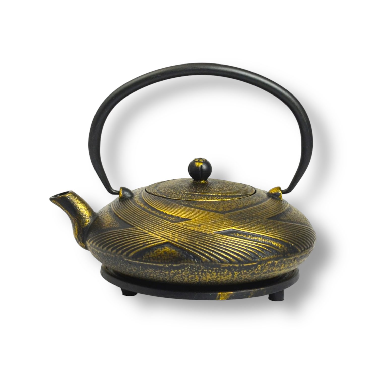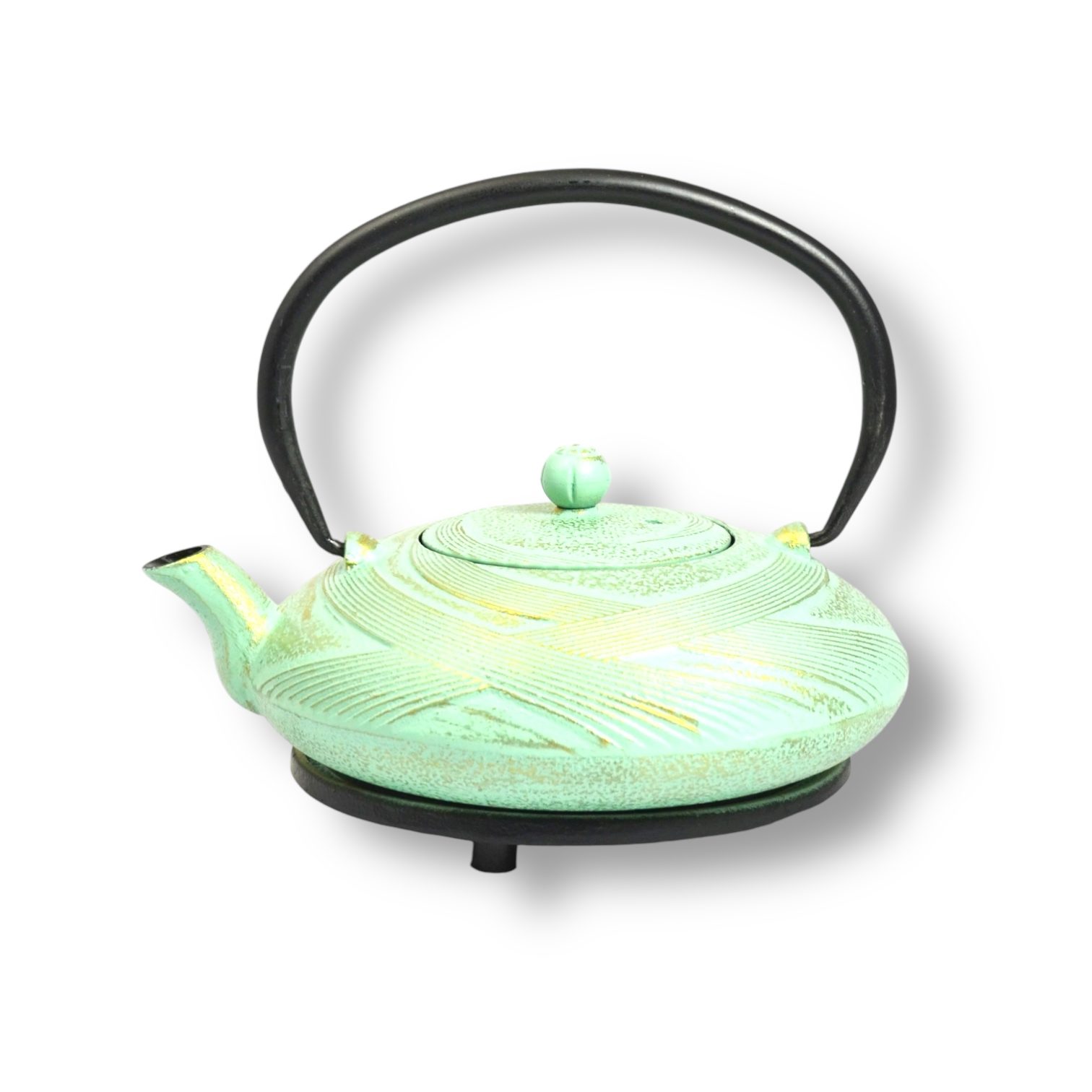 Gusseiserne Produkte der Marke ja-unendlich sind handgefertigte Kunstwerke, hergestellt in dem seltenen Sandgussverfahren nach japanischer Tradition. Mit bis zu 40 aufwendigen Arbeitsschritten ist jedes Produkt ein farbenfrohes Unikat, Farbe und Grösse können geringfügig abweichen. Qualität, Ästhetik und Raffinesse sind drei Schwestern, die unterschiedlicher nicht sein könnten und sich doch perfekt ergänzen. Gemeinsam gehen Sie auf Entdeckungsreise:„Ich mag diese flache Kanne mit den Streifen sehr gerne ! ", sagt Qualität. „Ach wirklich? Aber ich kann das sehr gut nachvollziehen, denn sie ist geradlinig und gleichzeitig verspielt“, antwortet Ästhetik. „Ich kann mich dem nur anschließen. Wobei ich die Farbkombinationen sehr gelungen finde.“, ergänzt Raffinesse. Die Teekanne aus Gusseisen ist innen durchgehend emailliert und wird mit einem farblich passenden Untersatz aus Gusseisen, sowie einem Edelstahl-Sieb geliefert. Der Untersatz dient zum Schutz einer jeden Tischplatte. Gusseisen zeichnet sich durch seine Fähigkeit aus, Hitze und Kälte länger zu speichern – ein Vorteil warmen Tee länger zu genießen, aber auch um Getränke zu kühlen. Die beigelegte Gebrauchsanleitung verrät wie man sich lange mit der richtigen Anwendung und der materialbedingten Langlebigkeit an diesem einzigartigen und formschönen Produkt erfreuen wird.