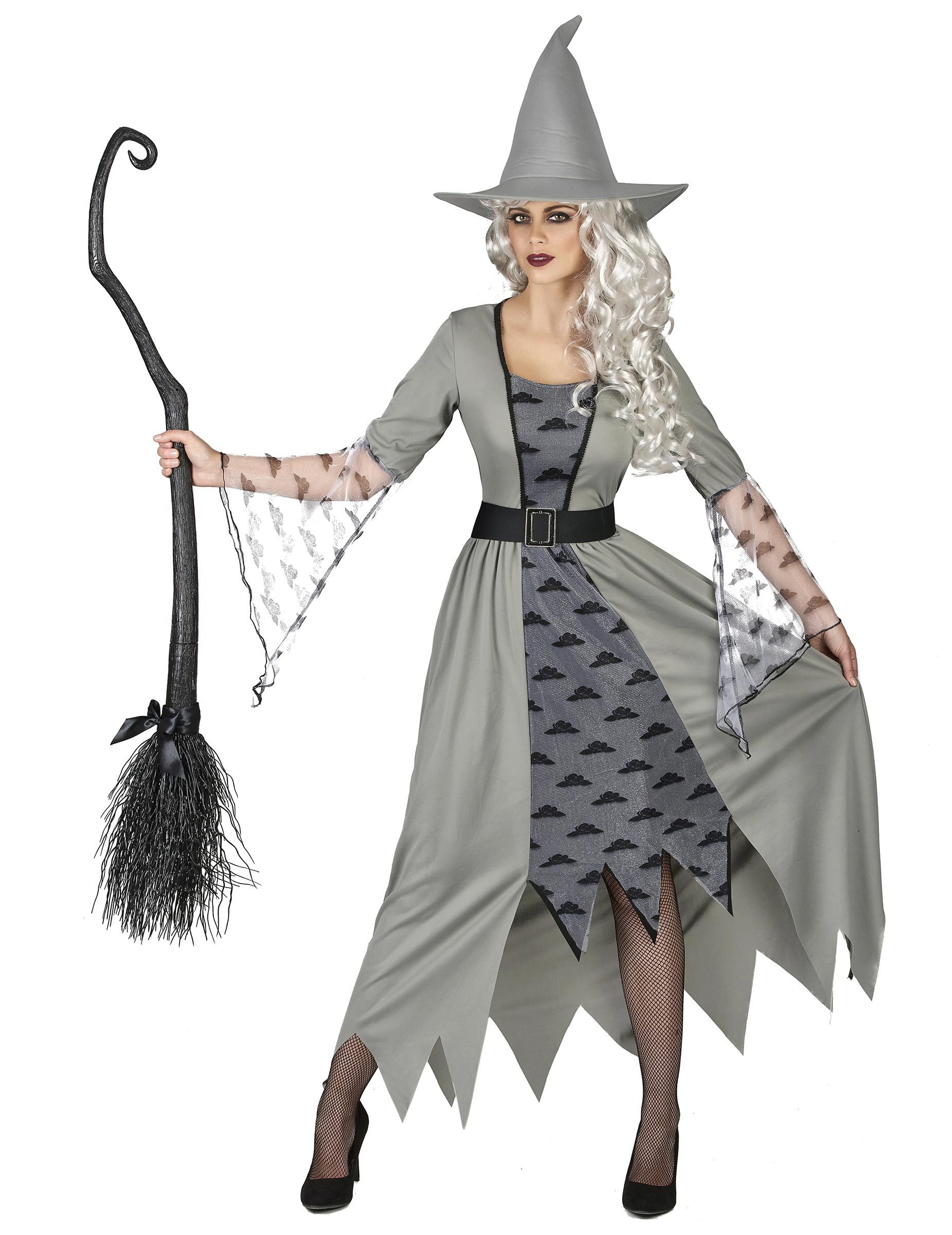 Wenn Sie in diesem verführerischen Hexenkleid ein paar Zaubersprüche aufsagen, werden sie die gewünschte Wirkung nicht verfehlen. Gerade die Herren der Schöpfung werden Ihnen reihenweise verfallen - und das ganz ohne Zauberkräfte! Mit diesem grauen Hexenkleid wird Ihnen das spielend gelingen, dessen Rockteil gezackt ist und neugierigen Blicken auf Ihre Beine eine faire Chance gibt. Der schwarze Gürtel mit der Schnalle setzt Ihre Taille wunderbar in Szene. Was Ihrem Hexenkostüm die Krone aufsetzt, ist natürlich der schicke, noch oben spitz zulaufende Hexenhut.Auf der nächsten Faschingsparty oder zu Halloween ist dieses Hexen-Outfit ein Hingucker. Passende Hexen-Accessoires wie Nasen oder Besen finden Sie in unserem Меню. Achtung! Nicht für Kinder unter drei Jahren geeignet. Kann Kleinteile enthalten - Erstickungsgefahr.