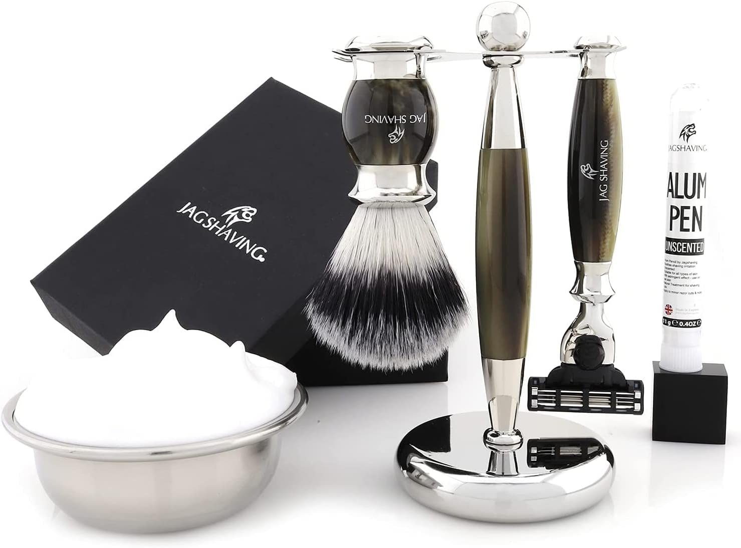 Hinweise | Elegantes 5-teiliges Rasierset mit Rasierer, Pinsel und Halter, ideal für die traditionelle Nassrasur. Ein perfektes Geschenk und ein unverzichtbares Pflegeprodukt. |
