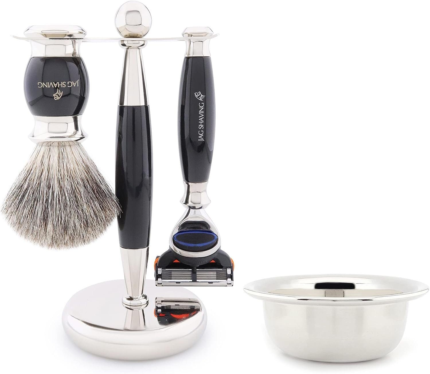 Elegantes 4-teiliges Rasierset mit Rasierer, Pinsel, Schale und Ständer, ideal für die traditionelle Nassrasur. Ein perfektes Geschenk und ein unverzichtbares Pflegeprodukt.