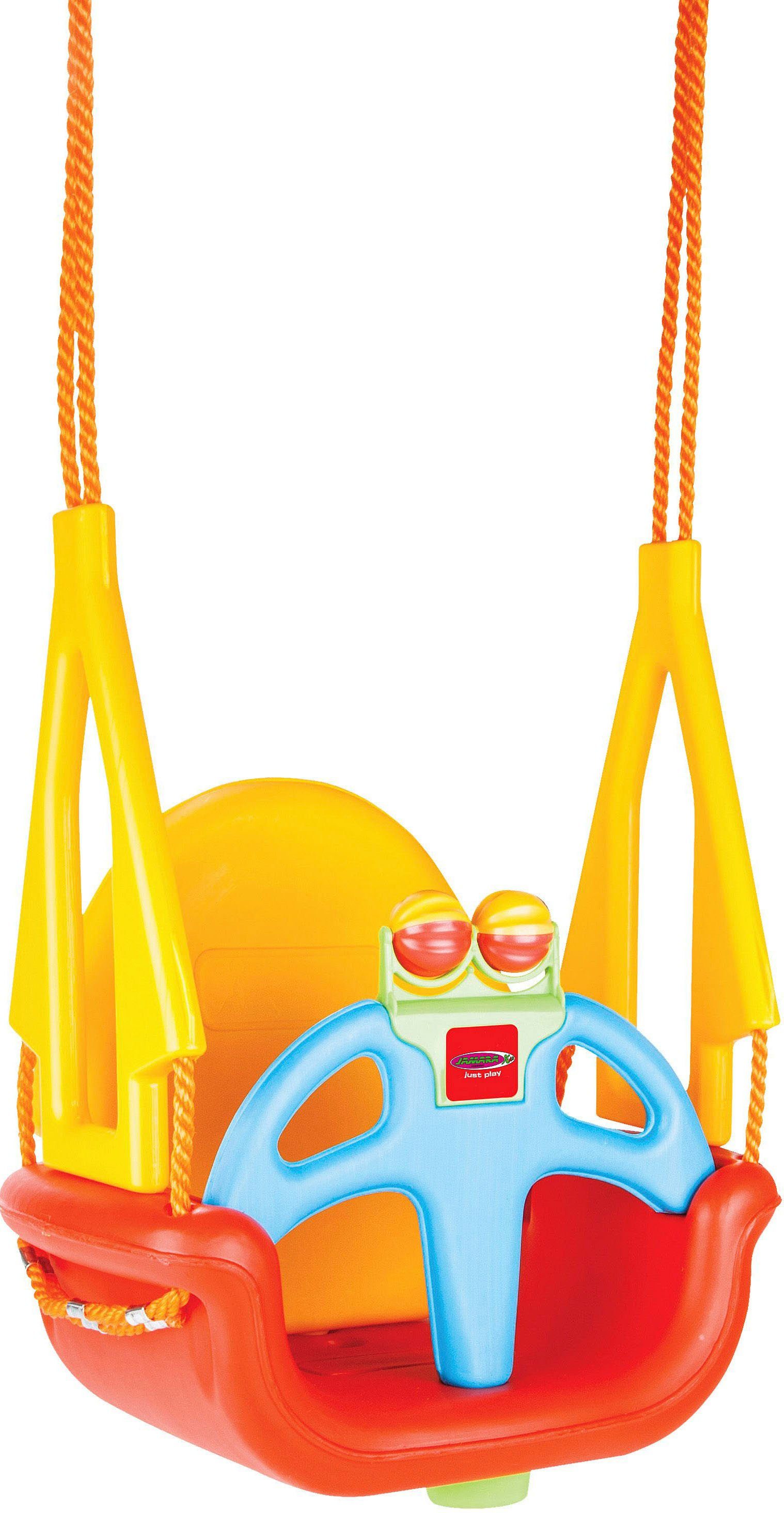 Ausstattung | Drehbare Kugeln mit Rasseln Durch 4-fache Befestigung ist der Sitz kippsicher Indoor- Outdoor geeignet Kann der Entwicklung des Kindes angepasst werden Seillhöhe: 163 cm Sicherheitsbügel Sicherheitsbügel/Rückenlehne abnehmbar Sicherheitsbügel/Rückenlehne zum einrasten Verstellbare Rückenlehne Witterungsbeständiger Kunststoff |