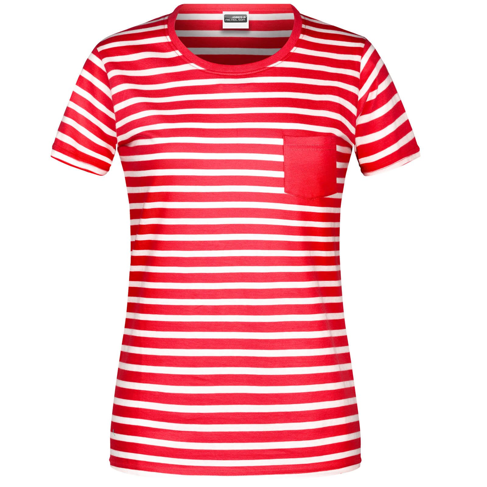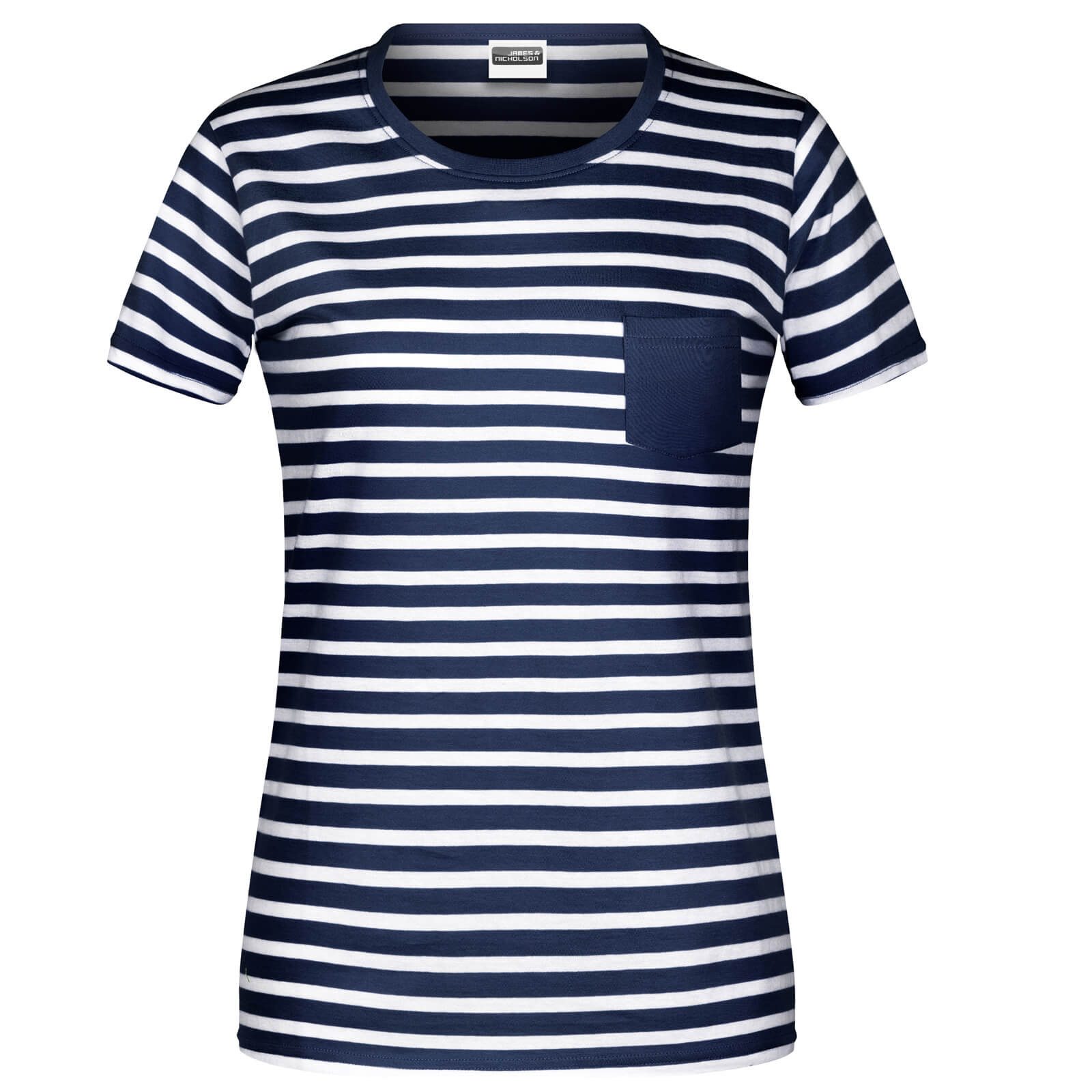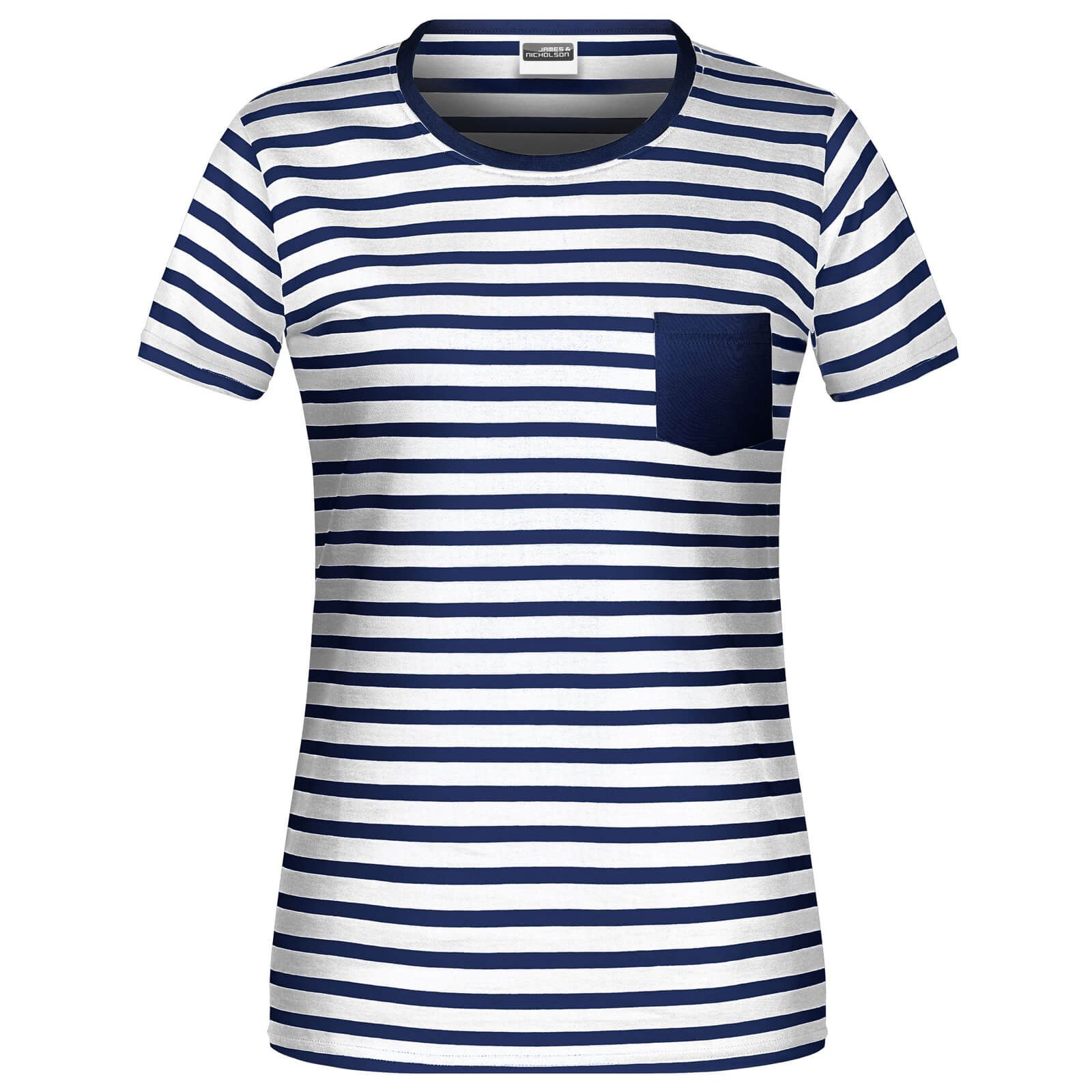 Besondere Merkmale | Damen Kurzarm-Shirt mit Streifen und Brusttasche aus Baumwolle |