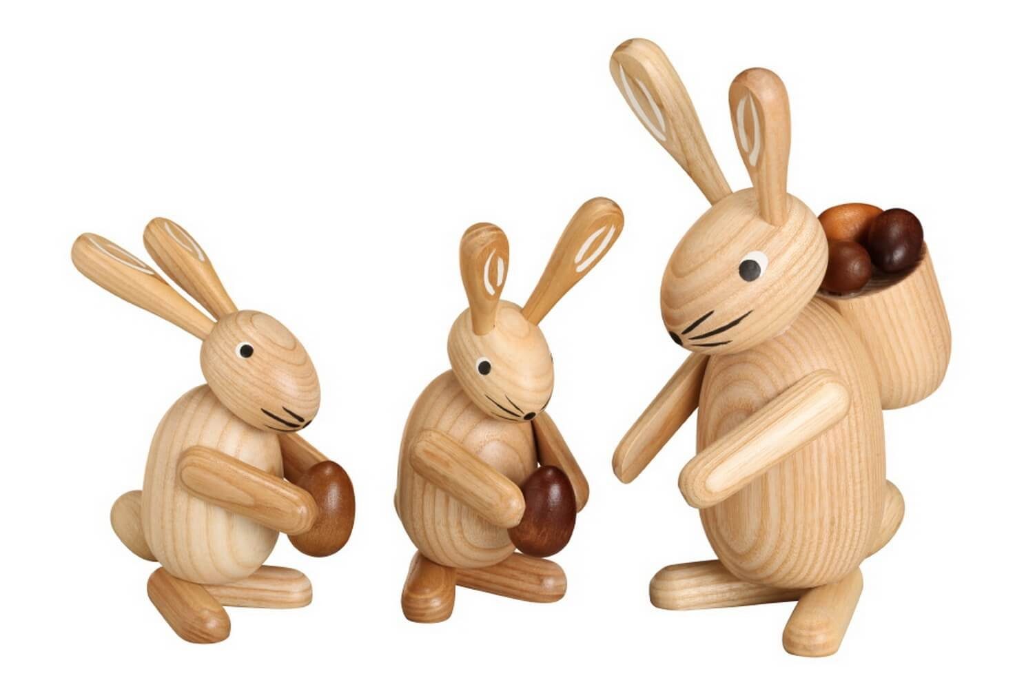 Osterhasengruppe, 3-teilig, natur, 18 cm von Jan Stephani aus Seiffen im Erzgebirge
