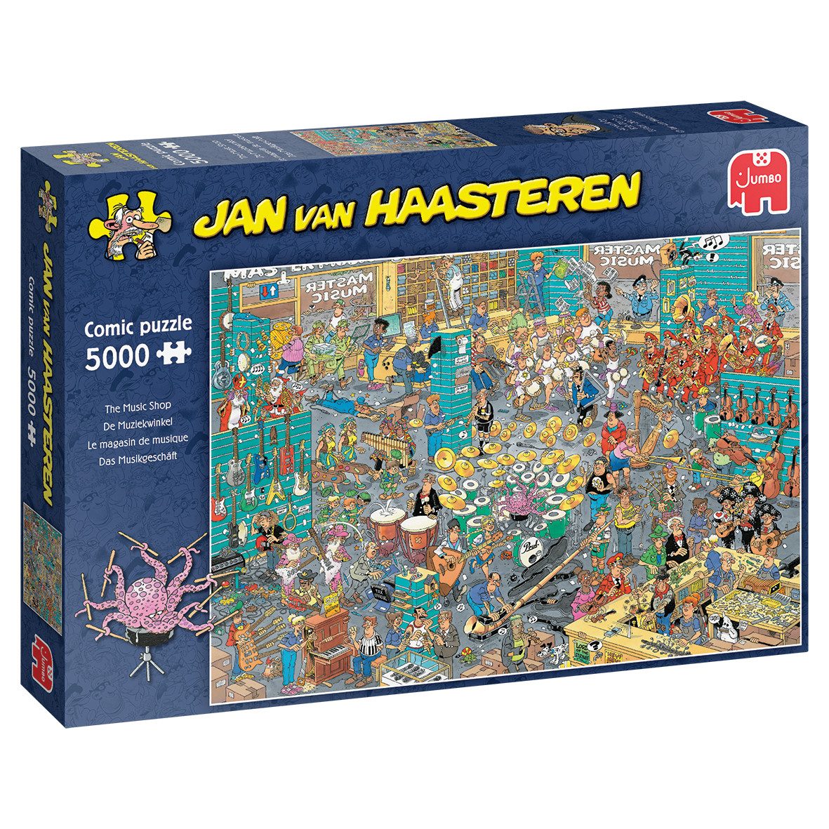 Seit Jahrzehnten gestaltet Jan van Haasteren äußerst detailreiche, bunte und vor allem humorvolle Illustrationen. Die meisten seiner Fans suchen sofort nach Jans Markenzeichen - der Haiflosse, die auf jedem Puzzle zu finden ist. Man kann aber auch nach anderen Lieblingselementen Ausschau halten - nach dem heiligen Nikolaus, dritten Zähnen oder Jans Selbstporträt, die auf fast allen seiner Bildern vorkommen.