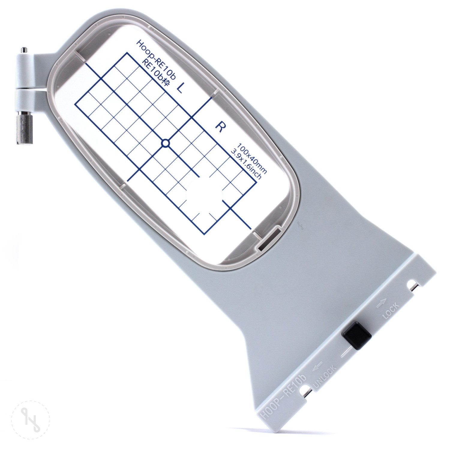 Der RE10b Stickrahmen von Janome ist in der Розмір von 100 x 40 mm und somit optimal für kleine Textilien wie Socken, Ärmel oder Taschen geeignet