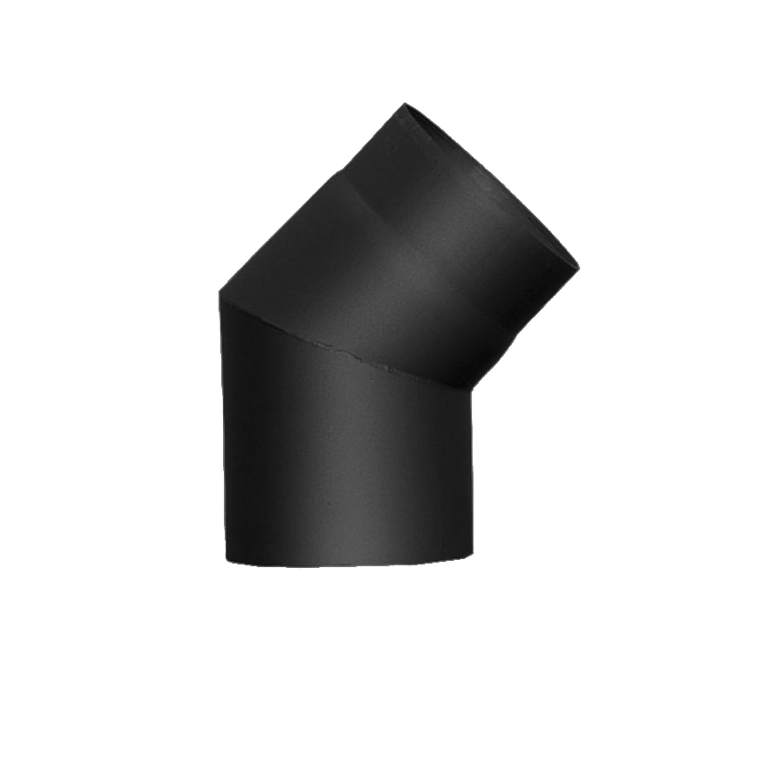 Jeremias Rauchrohrbogen, Winkel 45° ohne Tür Verbindungsleitung aus Stahlblech DC01 (ST12) mit eingezogener Steckverbindung, für den Einsatzbereich im Wohn- und Sichtbereich für den Anschluss an Kaminöfen. Details des Jeremias 45° Winkels: Material: Stahlblech Wandstärke: 2,00mm für Festbrennstoffe Schweißnaht: WIG ohne Zusatz Oberfläche: mit hitzefestem Senothermlack beschichtet mittlere Rauhigkeit: 1 mm CE-Zertifikatsnummer: 0036CPD9174017 CE-Klassifizierung nach DIN EN 1856-2: T600-N1-D-Vm-L01200g400 mit Strahlungschutz Sicke-Muffe-Steckverbindung kein Schweissen notwendig