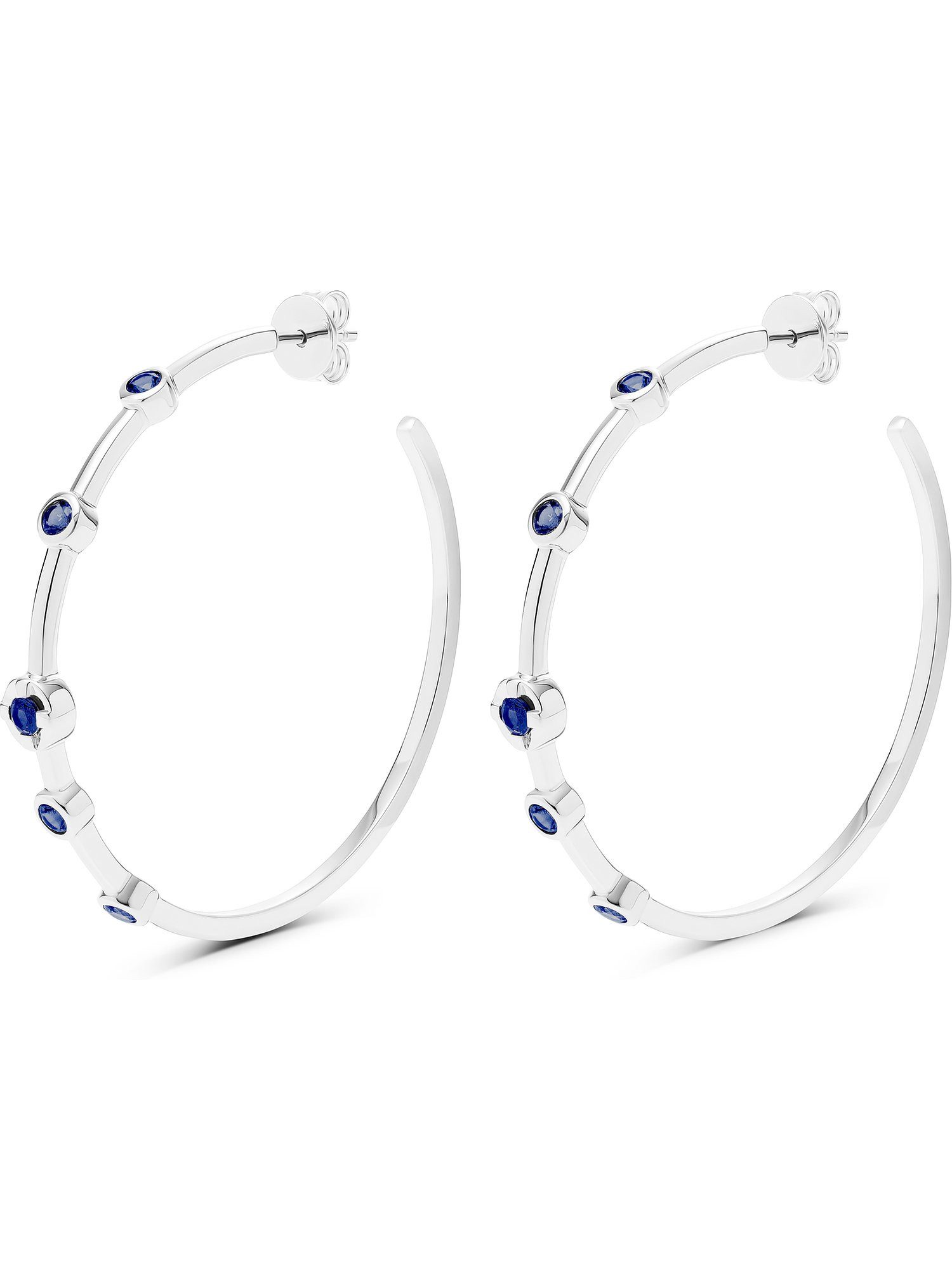 Wie royal anmutend kann ein Schmuckstück sein? Diese Ohrringe von JETTE rufen ganz laut: „Nie genug!“ Silberne Creolen kommen hier in Gesellschaft blauer Saphire daher, die ressourcenschonend im Labor hergestellt wurden. Insgesamt 5 an der Zahl fügen sich dezent in das zarte Gesamtbild ein. Ihr royales Blau passt perfekt zum kühlen Silber und verwandelt die Accessoires in eine Hommage an den funkelnden Nachthimmel. Doch nicht nur die Lab Grown Farbedelsteine passen perfekt zu einem nachhaltigen Lebensstil, sondern auch die Tatsache, dass der Ohrschmuck aus zu 100% recyceltem Silber hergestellt wurde.