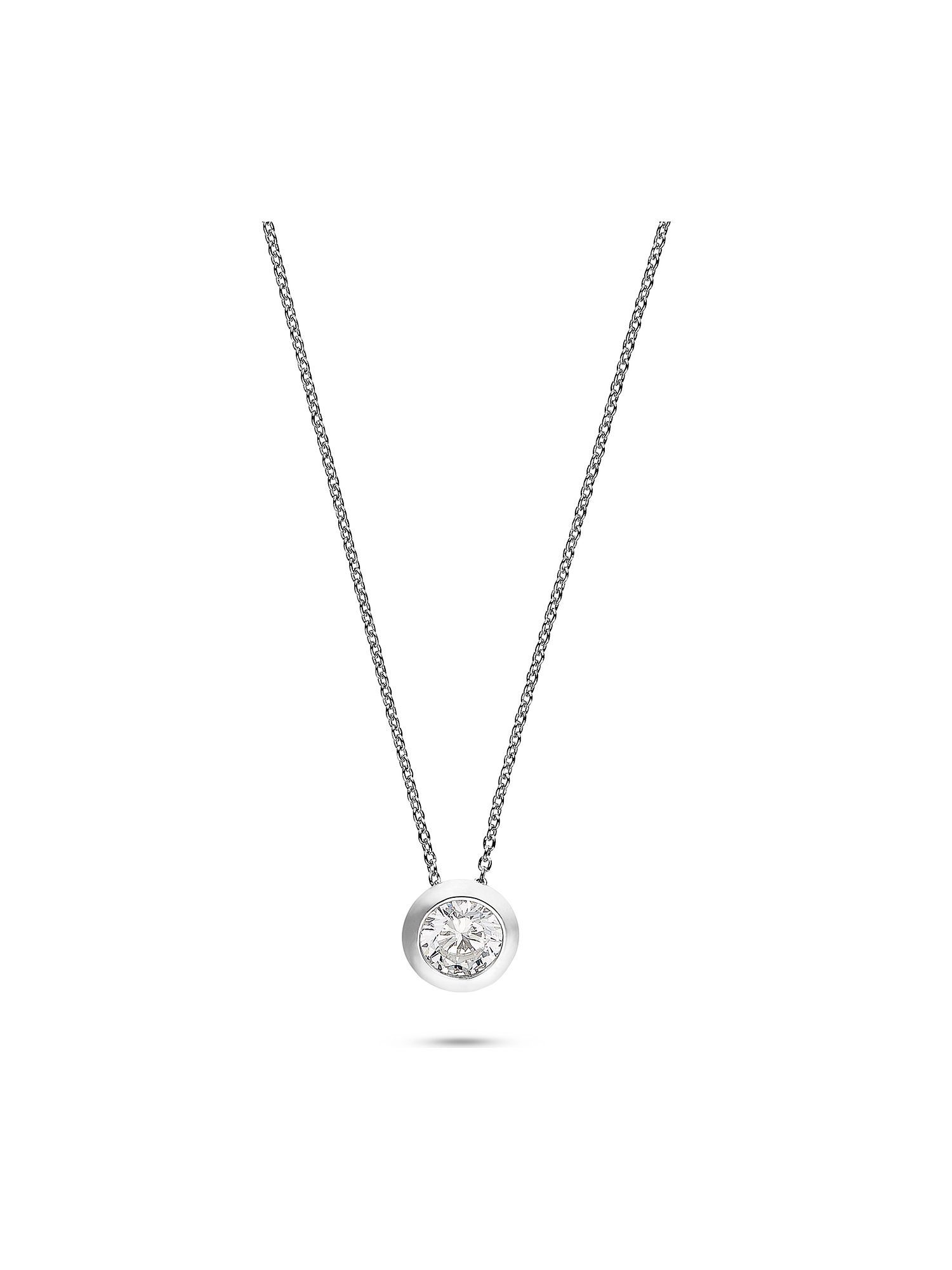 Rhodiniertes 925er Silber bildet den stilvollen Rahmen, um einen kostbaren Schmuckstein gekonnt in Szene zu setzen. Der perfekt facettierte Zirkonia bricht das Licht je nach Einfall immer wieder neu und sorgt für spannende Akzente. Dieser Halsschmuck von JETTE besticht einerseits durch sein kühles und sehr reduziertes Design. Zum anderen macht gerade dieses noble Understatement die Kette zum idealen Accessoire für jeden Tag.