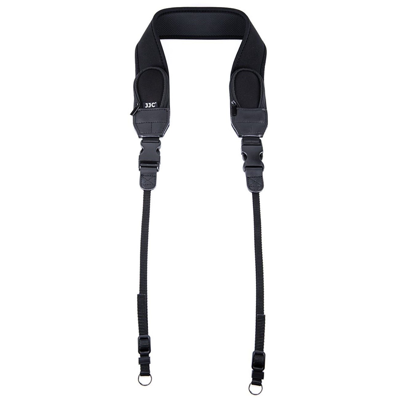 Die SBR-Innenseite mit unebenen Linien verhindert ein Verrutschen des Gurtes beim Fotografieren, während das ultraglatte Gurtband aus robustem Nylon Sicherheit und Langlebigkeit gewährleistet. Der Gurt verfügt an beiden Enden über Reißverschlusstaschen für kleine Accessoires wie Speicherkarten oder USB-Kartenleser. Die maximale Tragfähigkeit beträgt 11 kg. Die Schnellverschlüsse an den Enden ermöglichen ein einfaches Abnehmen und Anbringen des Gurtes.