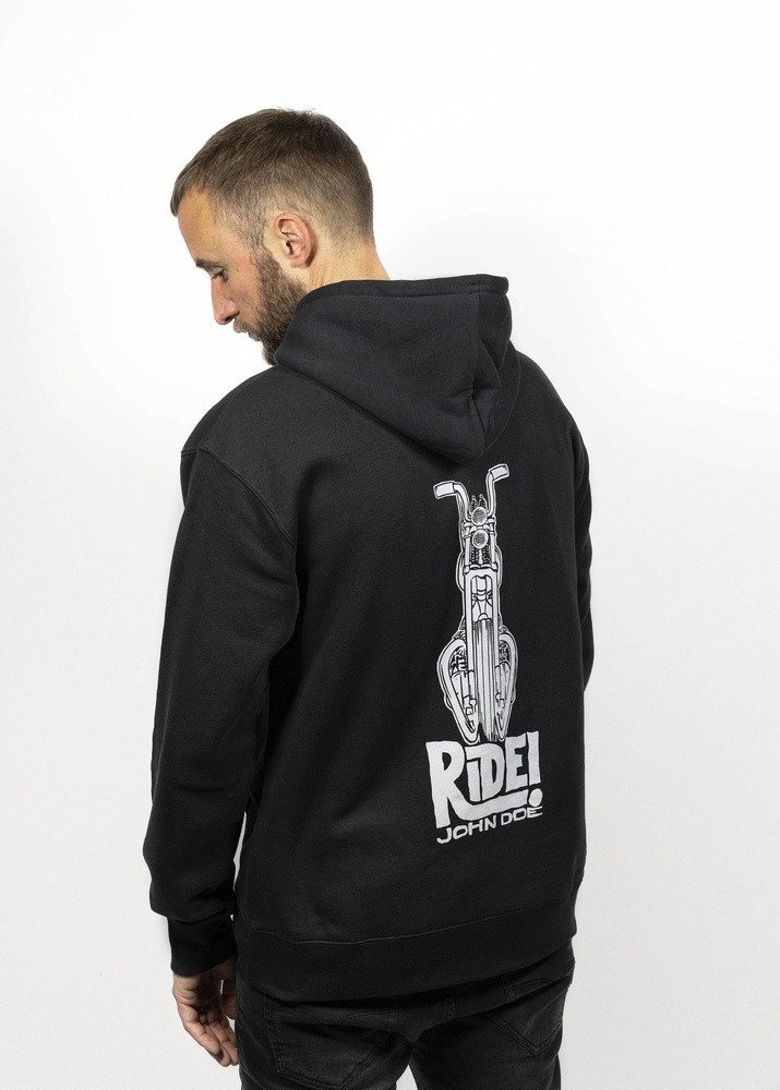 Original John Doe Hoodie mit stabilem Reißverschluss und dem neuen, aber schon kultigem John Doe Ride Motiv auf der linken Brust sowie großflächig auch auf dem Rücken. Klassische Details wie die Kapuze mit dicker Kordel und die Rippstrickbündchen an Ärmeln und Saum bieten eine stylische Optik. Zudem wird insgesamt ein komfortables Tragegefühl bei dem Sweater geboten dank der perfekten Passform und der idealen Mischung an hochwertiger Baumwolle und dem Polyesterzusatz. Kein Einlaufen des hochwertigen Pullovers! Waschmaschinen geeignet.