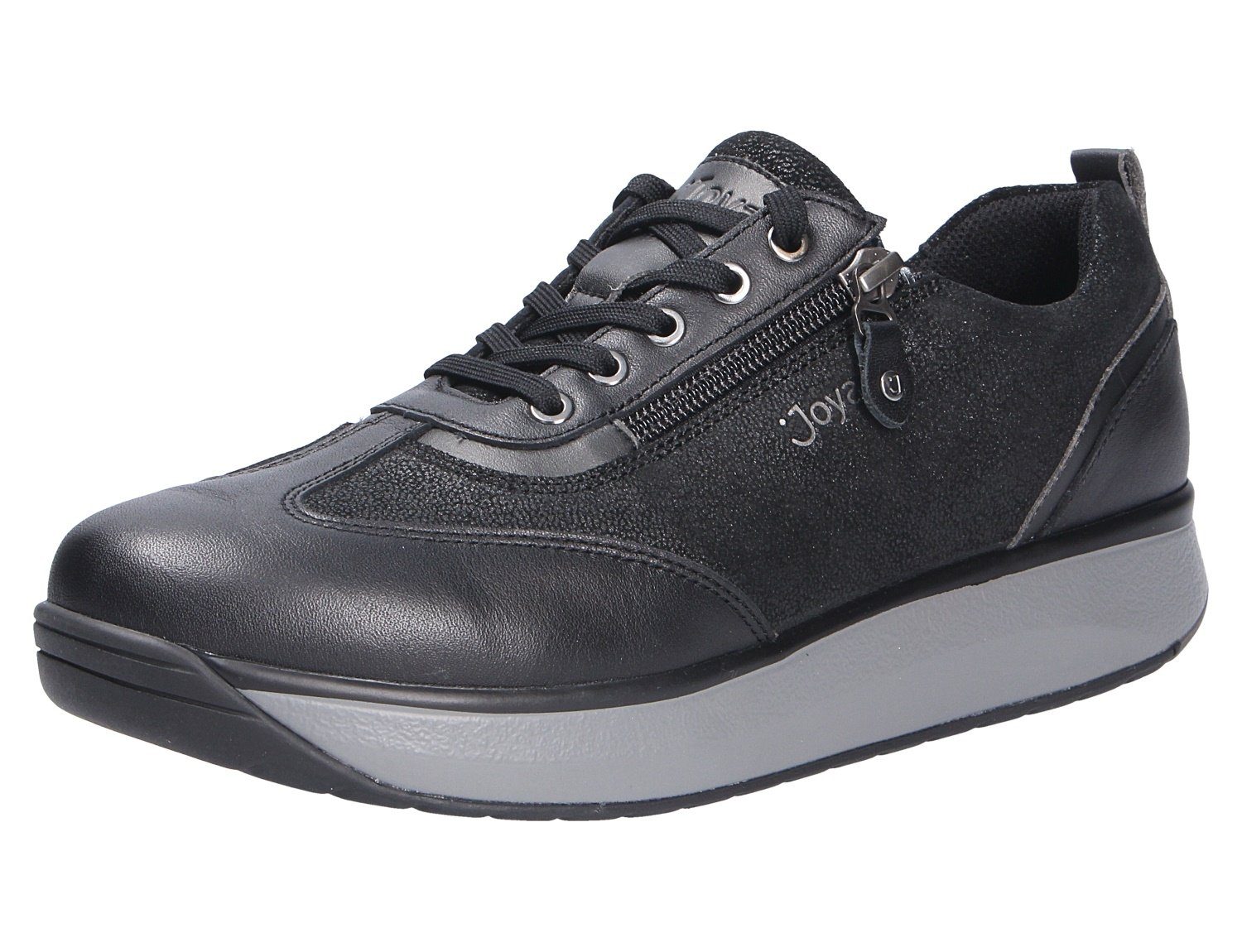 Schlichter Comfort und weiches Gehen sind beim Artikel LAURA BLACK II der Marke JOYA wichtige Merkmale die diese Modell auszeichnen. Das Obermaterial ist aus einer hochwertigen Glatt-Nubukleder Kombination. Innen ist der Schuh mit einem elastischen sowie atmungsaktiven Textil augestattet. Die OrthoLite Support Einlegesohle ist sehr leicht und stark atmungsaktiv. Sie besteht aus einem PU-Schaum mit EVA-Verstärkung im Fersen- und Mittelfußbereich für zusätzliche Stabilität.Natürlich ist die Sohle herausnehm- und auswechselbar. Auf diesen Schuh freuen sich besonders etwas breitere Füße:Die Weite H bietet hier ausreichend Platz. Der Absatz ist durchgehend flach ,die Sohlenkategorie emotion steht für Freude am Stehen und Gehen.Die weich-elastische Joya Sohle dämpft jeden Stoß ab und unterstützt dadurch effektiv die Entlastung von Rücken und Gelenken. Das Ergebnis: ein einzigartiger Gehkomfort. Ideal für Menschen, die sich und ihre Füße mit einem einzigartig weichen Geh-Gefühl verwöhnen wollen.Die emotion-SENSO Technologie ist besonders weich im Fersen- und Vorfußbereich und bietet durch die starke Dämpfung eine optimale Entlastung.Besonders geeignet für Menschen mit sensiblem Rücken und täglich stark belasteten Füßen und Gelenken. Über den Schnürverschluß ist eine optimale Anpassung an den Fuß möglich. Die karree-förmige Schuhform hat zwei Vorteile: Sie wirkt sportlich und bietet einen angenehmen Tragecomfort für den Fuß und die Fußzehen. Die Розмір взуття fällt regulär aus.