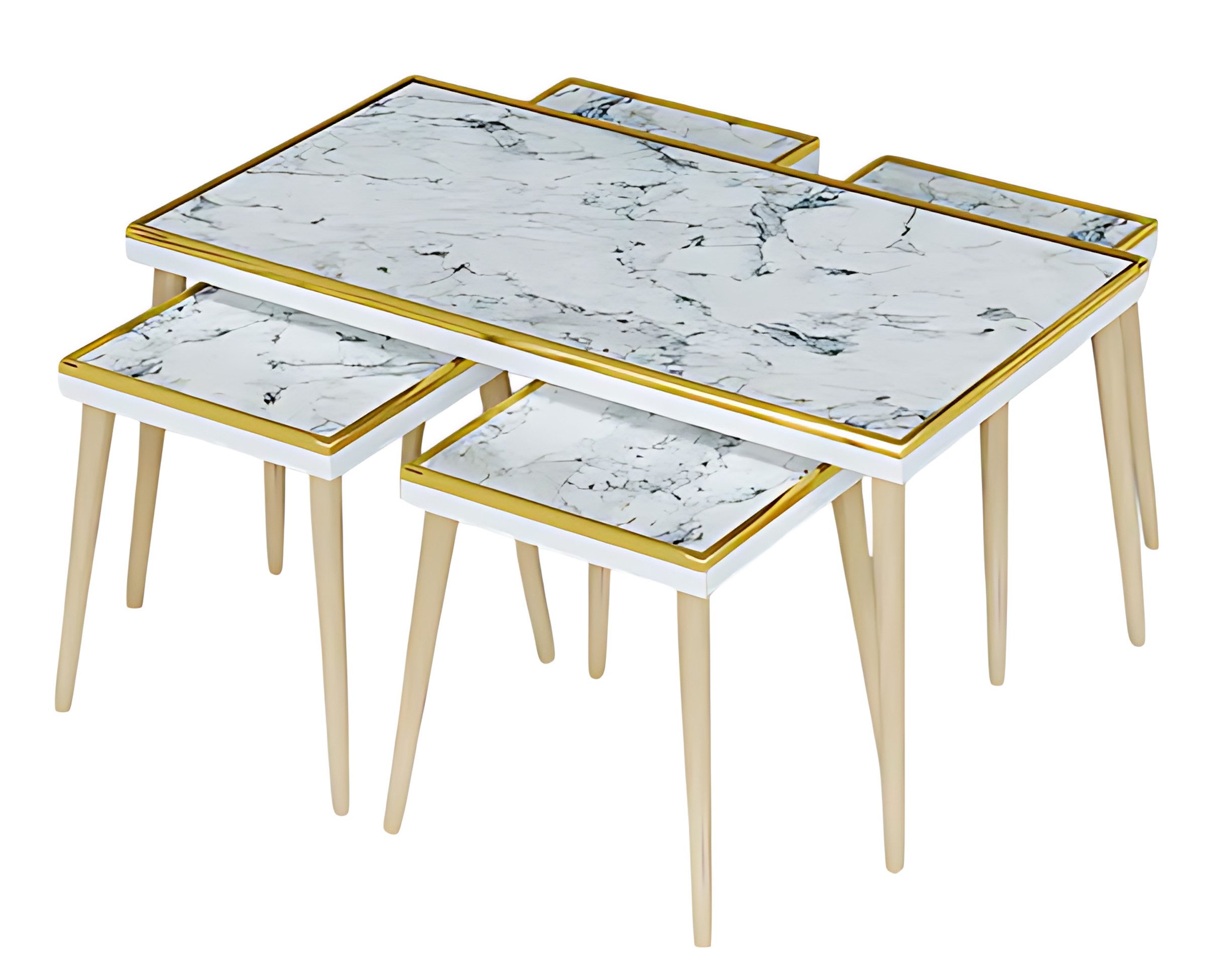 JVmoebel Couchtisch Elegantes weißes Wohnzimmer-Set aus Holz und Edelstahl (Couchtisch, 4x Beistelltische), Made in Europe