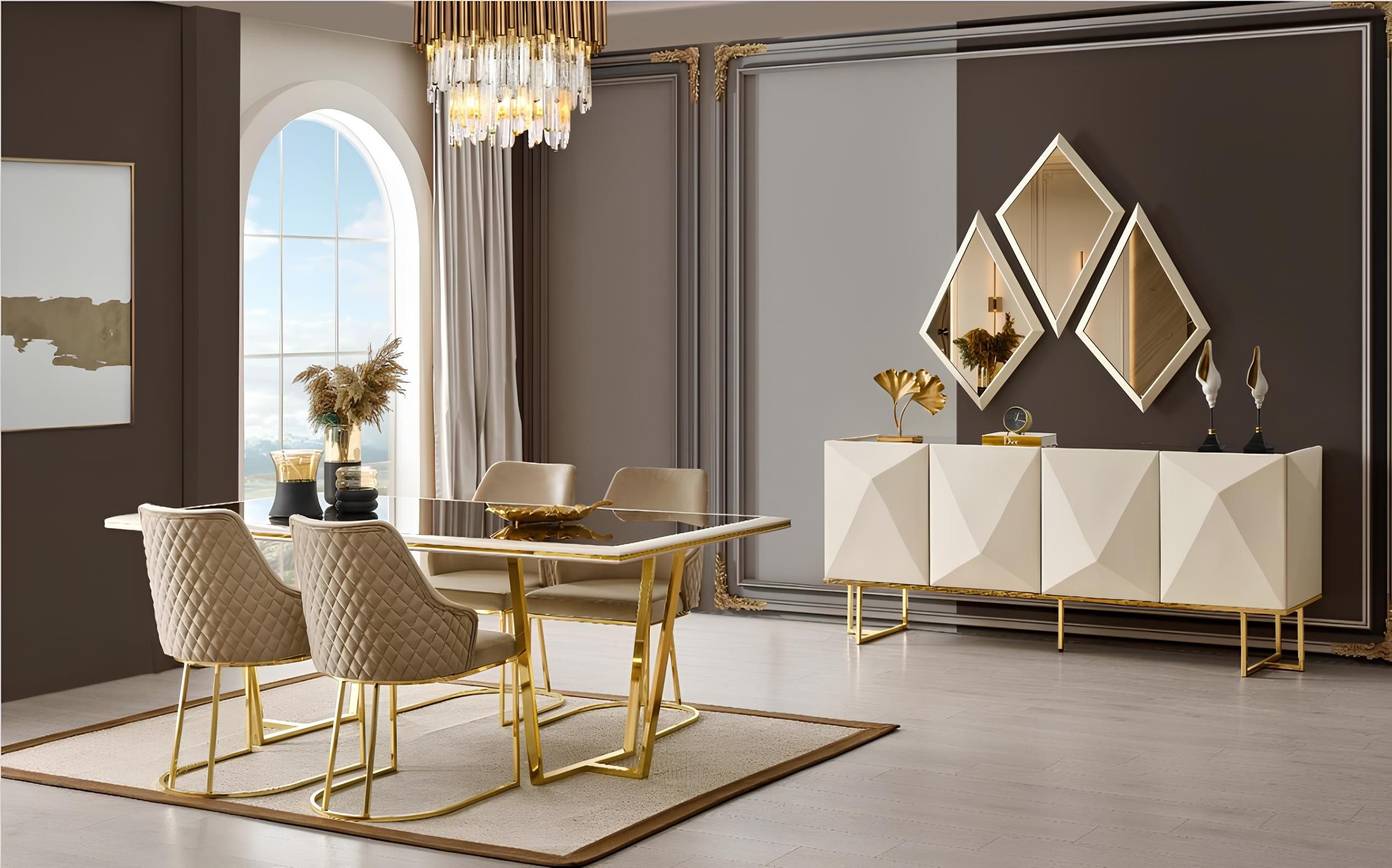 Serie | Esstisch, 6xStühle, Sideboard, 3xSpiegel |