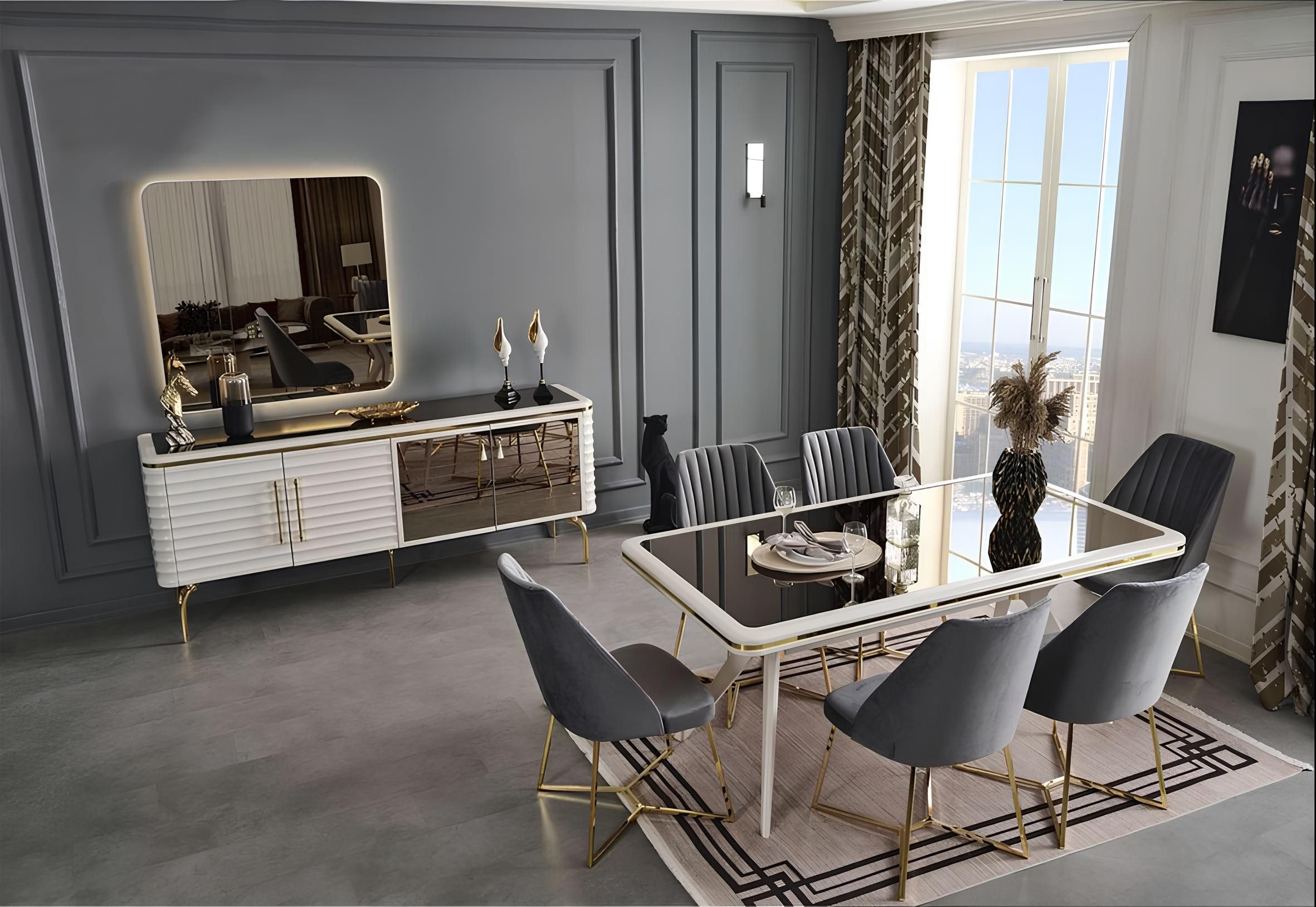 Serie | Esstisch / 6x Stühle / Sideboard / Spiegel |