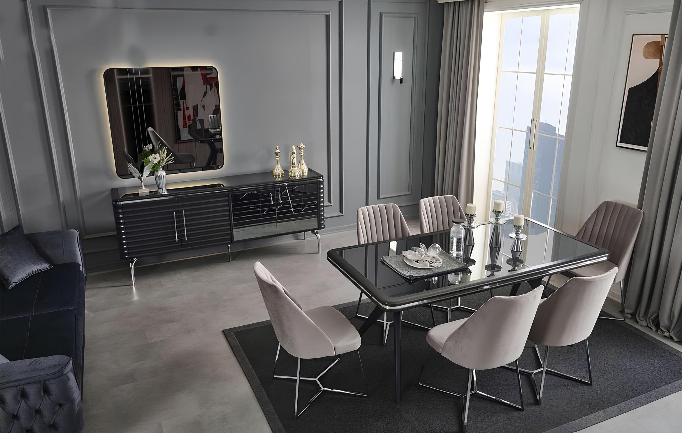 Serie | Esstisch / 6x Stühle / Sideboard / Spiegel |