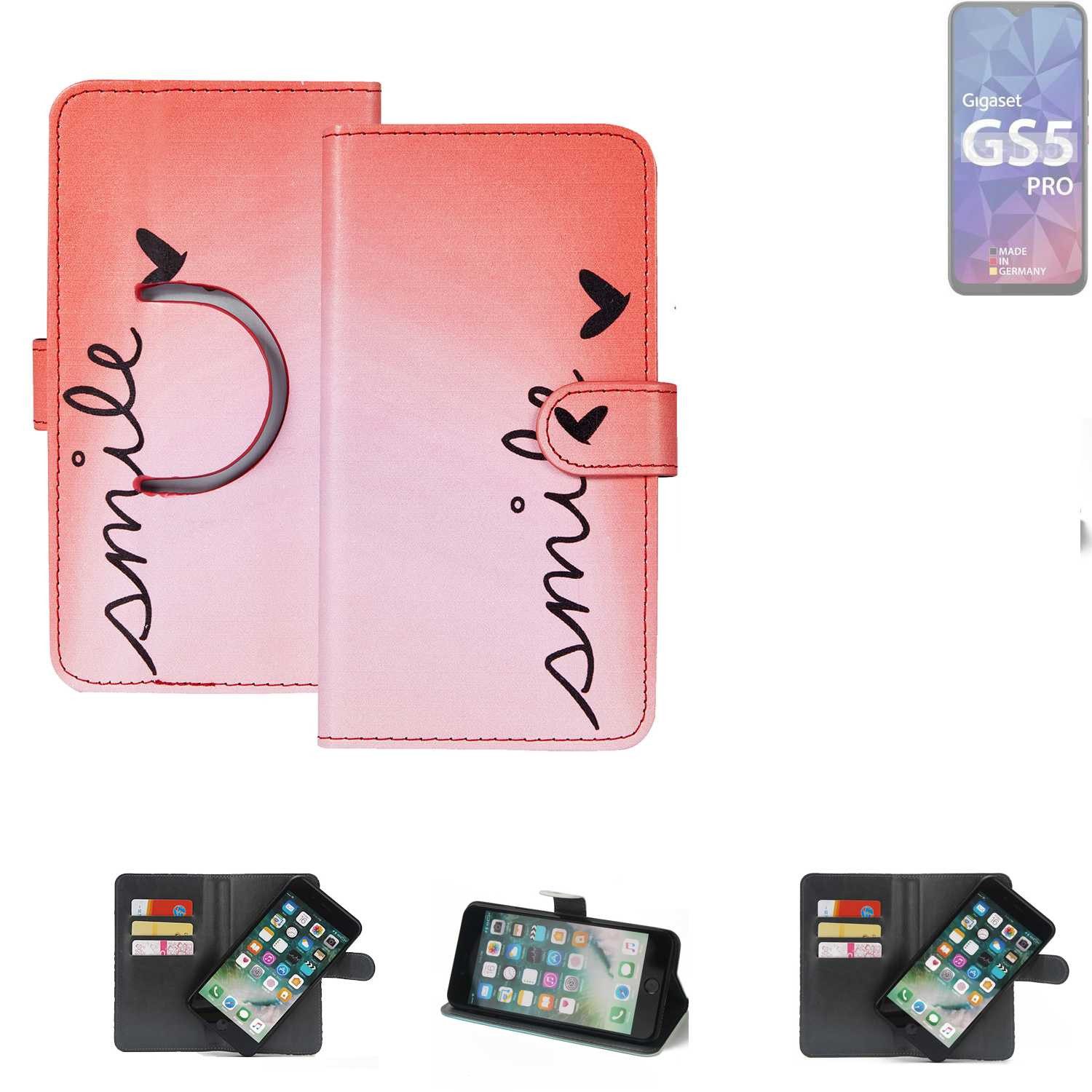 Besondere Merkmale | Schutzhülle Handyhülle Hülle cover bookstyle Etui ''smile'' rot |