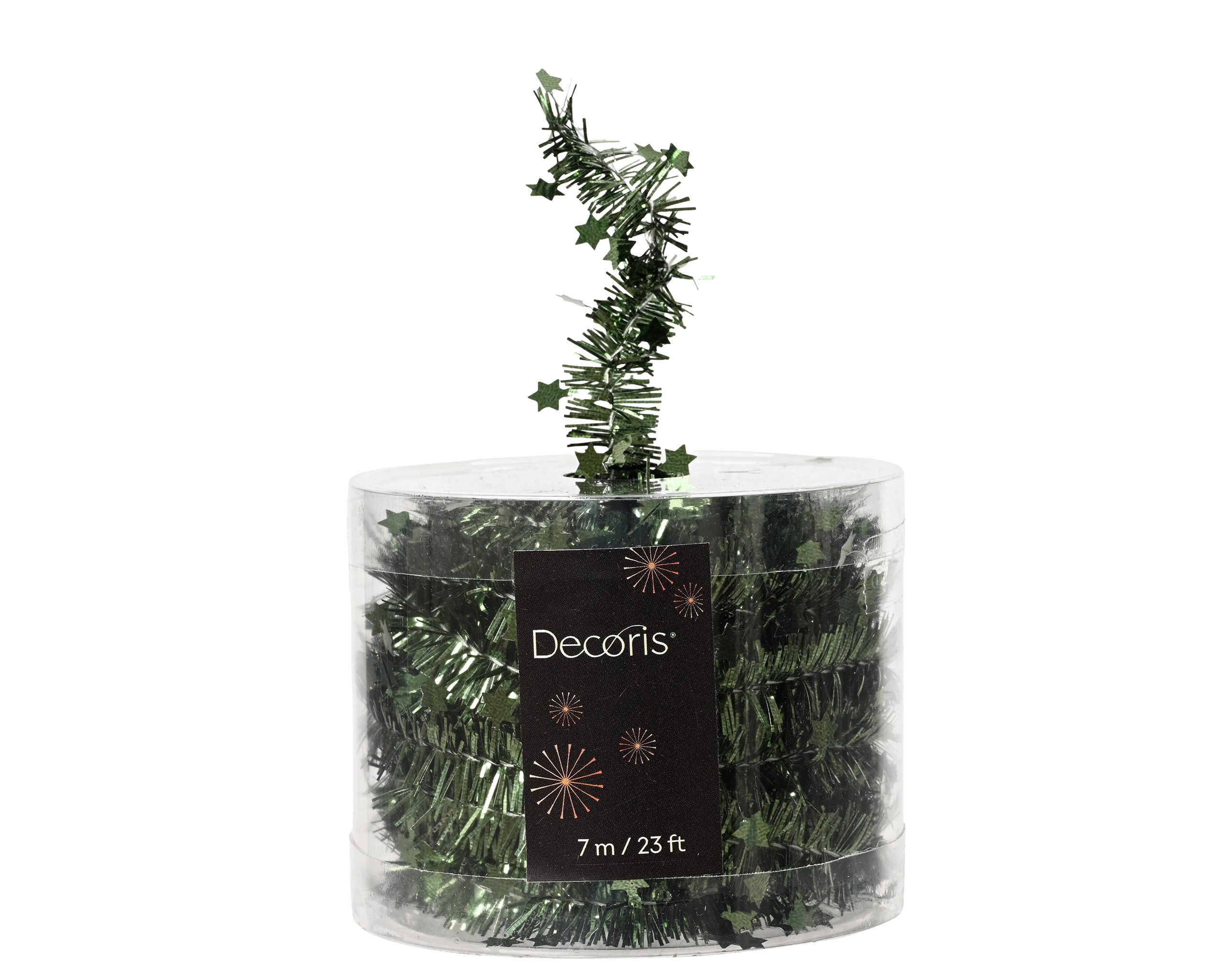Sternengirlande / Lametta Girlande mit Sternen / Foliengirlande / Dekogirlande Material: Kunststoff - PVC - Durchmesser: ca. 2cm ohne Sterne, ca. 3 cm inkl. Sterne - Durchmesser eines Sternes: ca. 0,5 cm - Довжина: ca. 7 m - Packungsinhalt: 1 Sternengirlande in der Dose - Farbton: tannengrün - waldgrün - weihnachtsgrün - mit weichem Draht um flexibel zu dekorieren - kann nach Bedarf in einzelne Teile zerschnitten werden Ob am Weihnachtsbaum oder dem festlich gedecktem Tisch, diese glänzende Dekoration lässt Ihr Zuhause erstrahlen. Zaubern Sie Festtagsstimmung mit der Sterngirlande, die nicht nur durch ihre Haltbarkeit, sondern auch durch ihre Vielseitigkeit überzeugt. Mit ihrer Довжина von 7 m bietet die Drahtgirlande ausreichend Material für Ihre kreativen Dekorationsideen. Sie können die Girlande auch zum Basteln verwenden, in einzelne Teile zerschneiden und nach Ihren individuellen Vorstellungen gestalten. Neben der Verwendung als Weihnachtsdeko, eignet sich die Partygirlande auch ideal für andere besondere Anlässe. Stil & Aufmachung: uni & einfarbig, glänzend - Farbgruppe: grün - dunkelgrün - Anlässe: Weihnachten, Christmas, Weihnachtsfest, Weihnachtsfeier, Weihnachtsparty, Winterparty, Winterhochzeit, Hochzeit, Hochzeitsfeier, Hochzeitsparty, Geburtstag, Geburtstagsparty, Geburtstagsfeier, Jubiläum, Silvester, Silvesterparty, Fasching, Karneval Die Farben können aufgrund von unterschiedlichen Monitor Einstellungen vom Foto leicht abweichen
