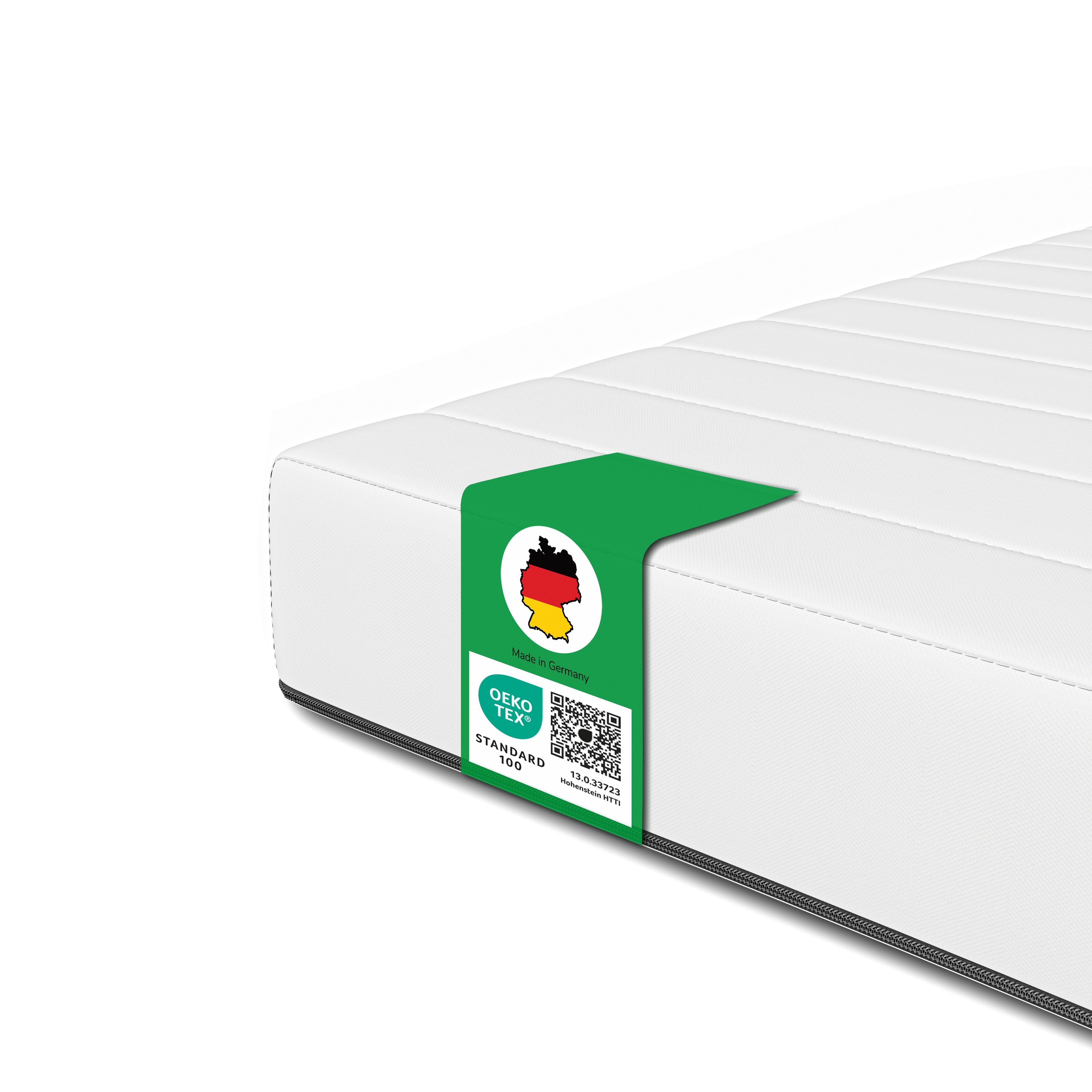 Atmungsaktiver Kaltschaum für ein frisches SchlafklimaDer verwendete Kaltschaum ist nicht nur atmungsaktiv, sondern auch feuchtigkeitsregulierend. Die offene Zellstruktur sorgt für optimale Belüftung, wodurch Wärmestau vermieden wird. Dies garantiert dir in warmen Nächten ein angenehm frisches Schlafklima.