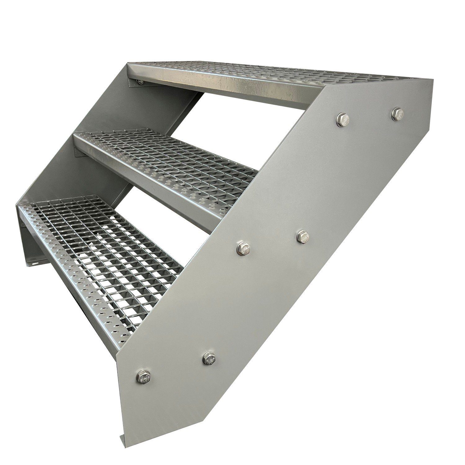 für Geschosshöhen bis 57 cm, Stufen Gitterroststufen nach DIN 24531, (Höhe 57 cm, Breite wählbar aus 60, 80, 100, 120, 140 cm), Gartentreppe Stahltreppe Wetterfest Rostfrei Feuer-Verzinkt Rutschfest