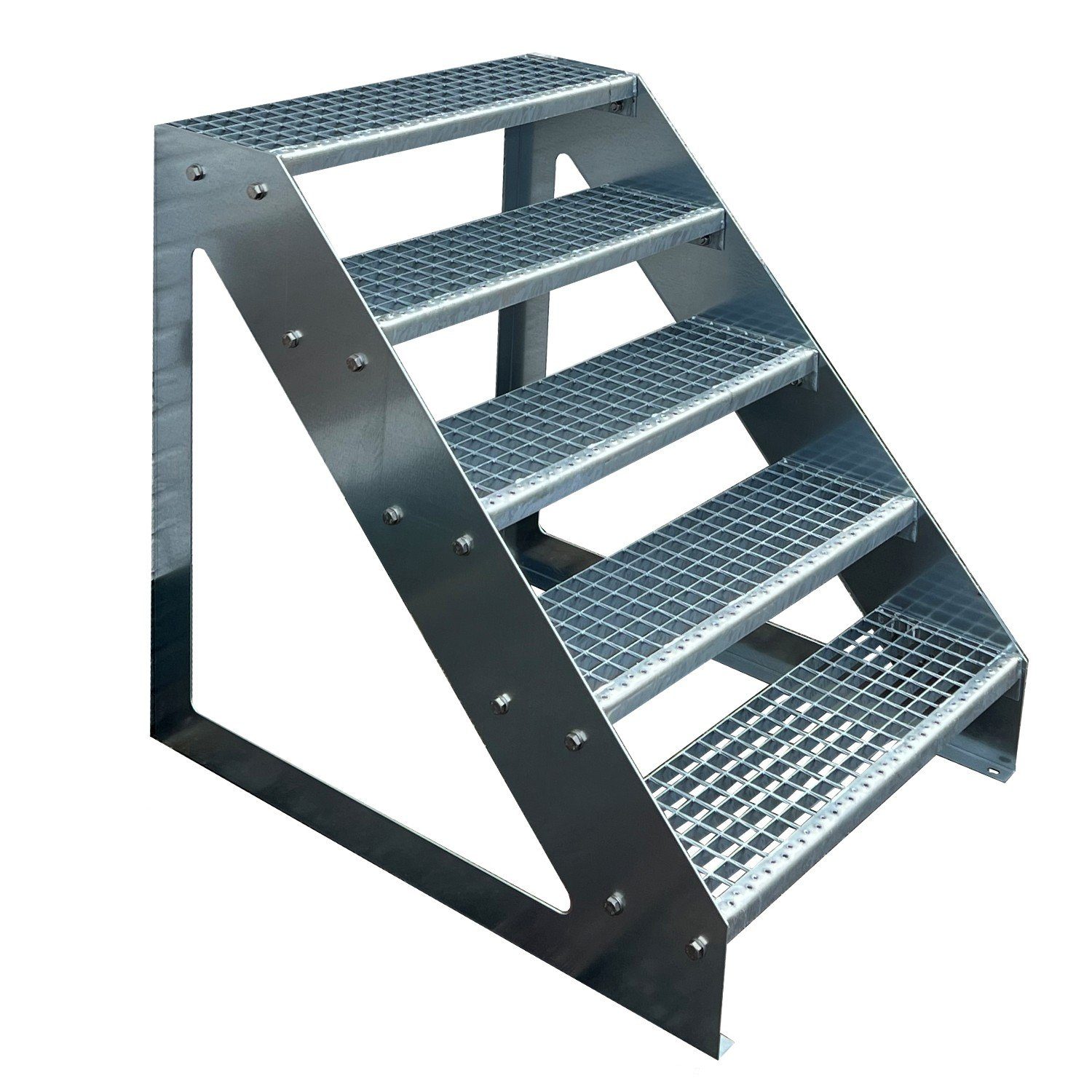 für Geschosshöhen bis 95.00 cm, Stufen Gitterroststufen nach DIN 24531, (Höhe 95 cm, Stufenbreite und Geländerart wählbar), Gartentreppe Stahltreppe Wetterfest Rostfrei Feuer-Verzinkt Rutschfest