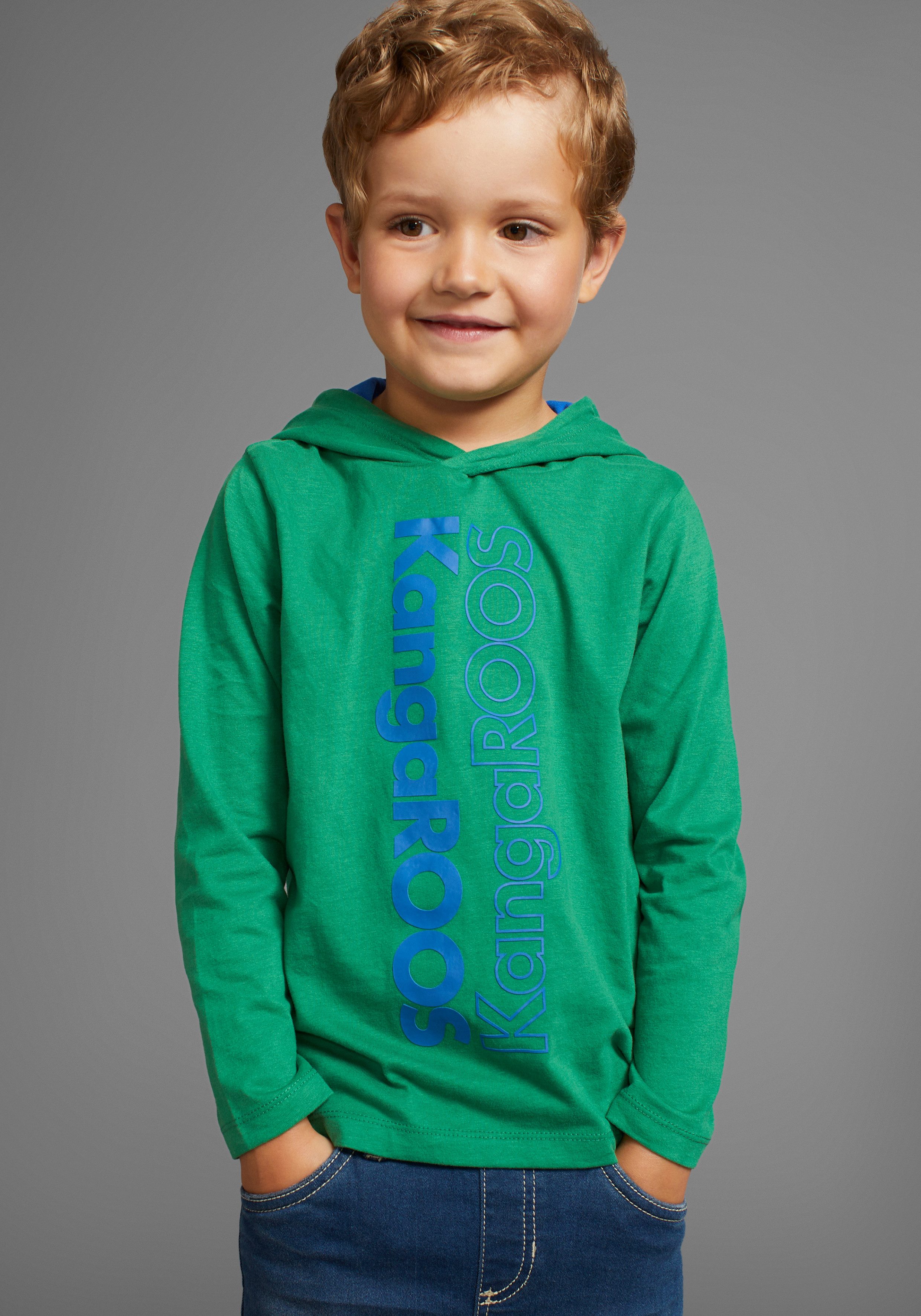 Probieren geht über kopieren: Mit diesem Kapuzenshirt »Kleine Jungen« von KangaROOS erfinden Teens ihren eigenen Style. Durch die Logodrucke wirkt es cool und auflockernd. Es ist basic geschnitten, sodass sich Teenies frei bewegen können.