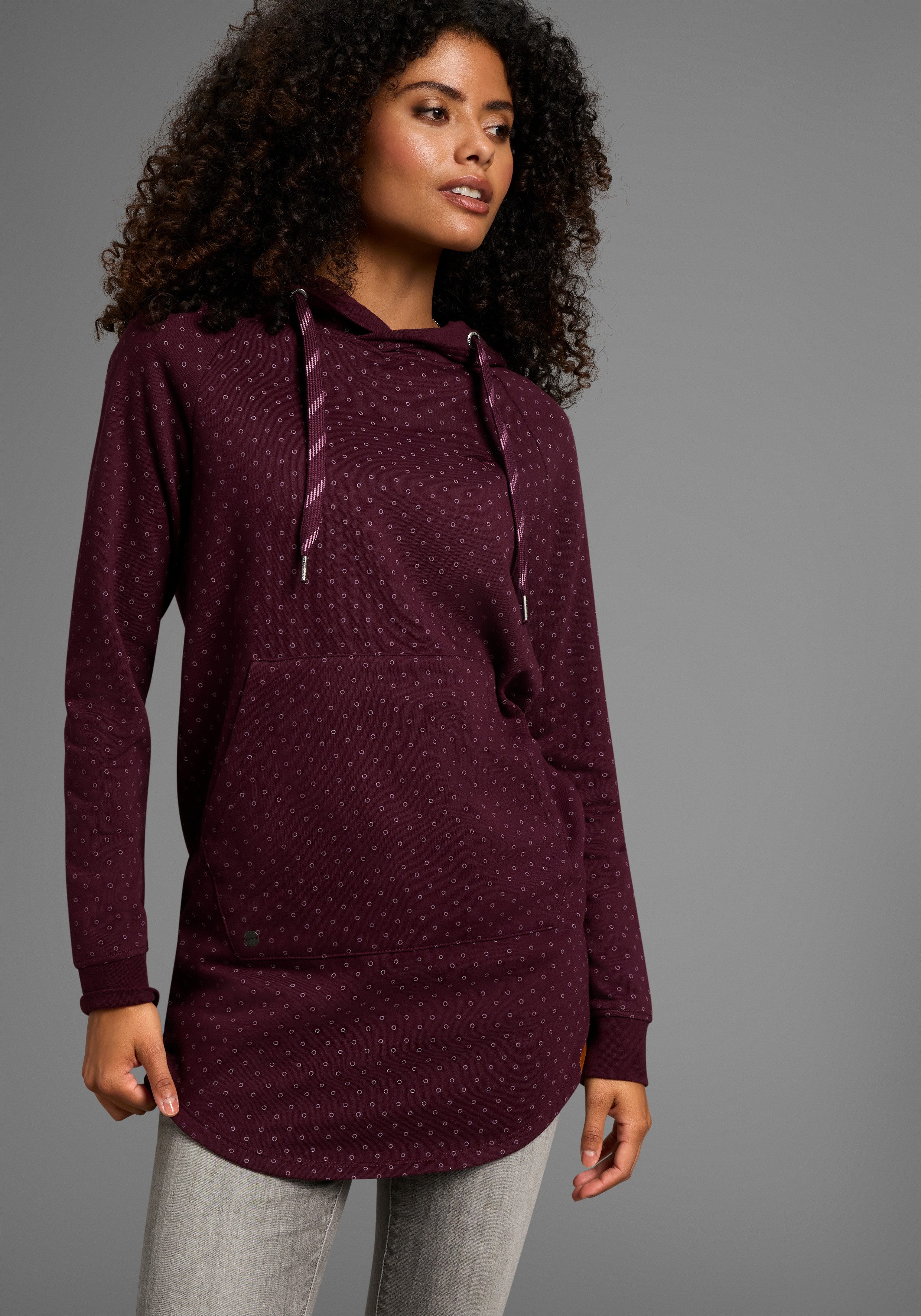 Mit dem Longsweatshirt von KangaROOS lassen sich schnell neue Styles kombinieren. Es wirkt mit dem Label, Metalllabel und der Stickerei charmant und stilvoll. Dieses Longsweatshirt hat eine angesetzte Kapuze – sie hat einen Kordelzug, um die Kapuzenweite zu verstellen. Die langen Ärmel enden in einem Rippbündchen, das für guten Sitz sorgt. Dieses Sweatshirt ist oberschenkellang sowie figurumspielend geschnitten, sodass du dich wohlfühlst.