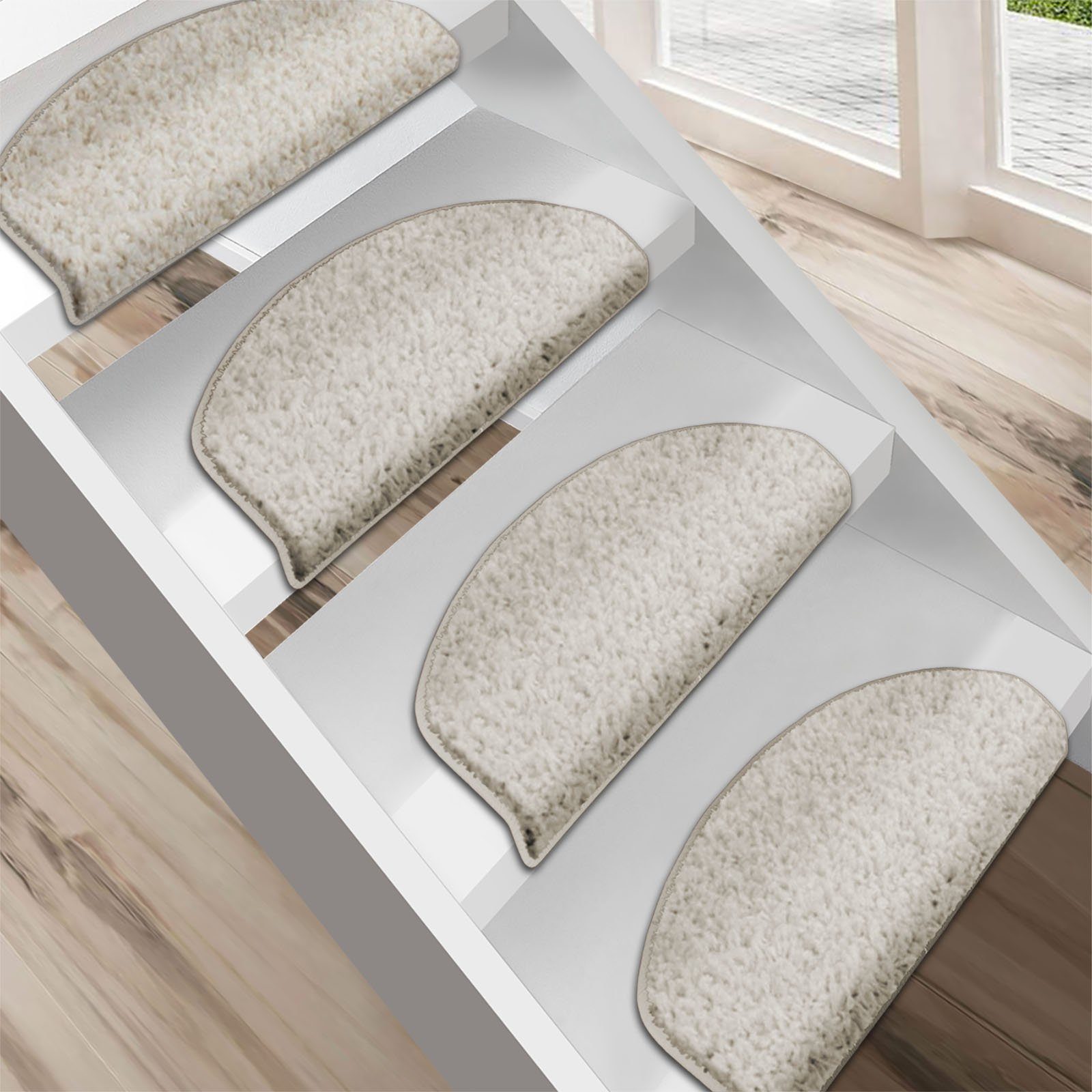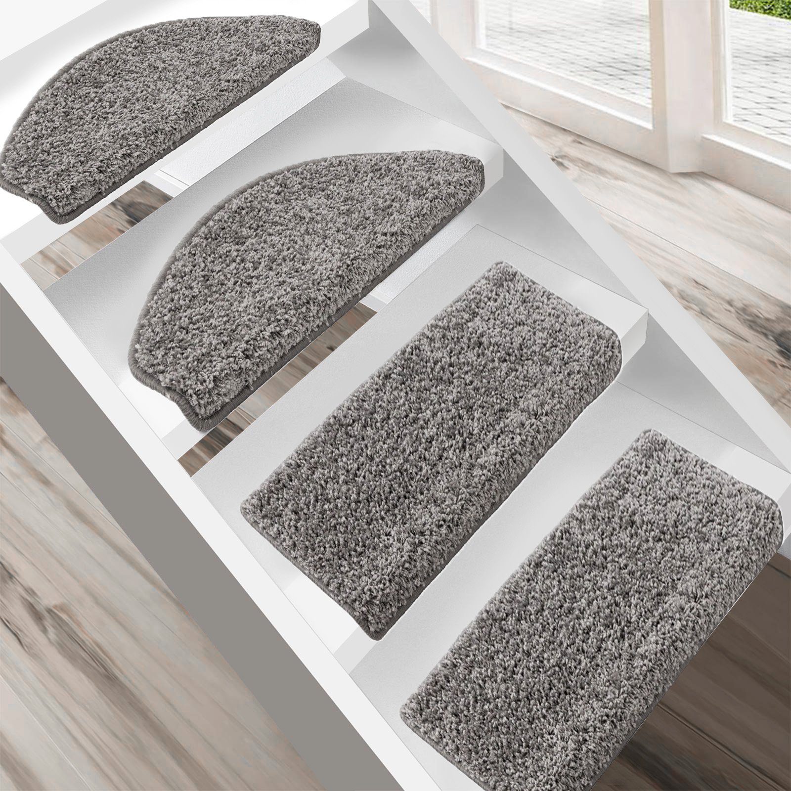 Die Shaggy-Treppenstufenmatten machen nicht nur durch ihr breites Farbspektrum auf sich aufmerksam – die Langflor-Treppenteppiche sorgen auch für ein angenehmes Laufgefühl auf kalten Treppenstufen. Wärmend dank des kuscheligen Kunstfaser-Flors, weich und darüber hinaus rutschhemmend durch den Action-Back-Rücken, der die Hochflor-Stufenmatten sowohl federt als auch an Ort und Stelle hält.