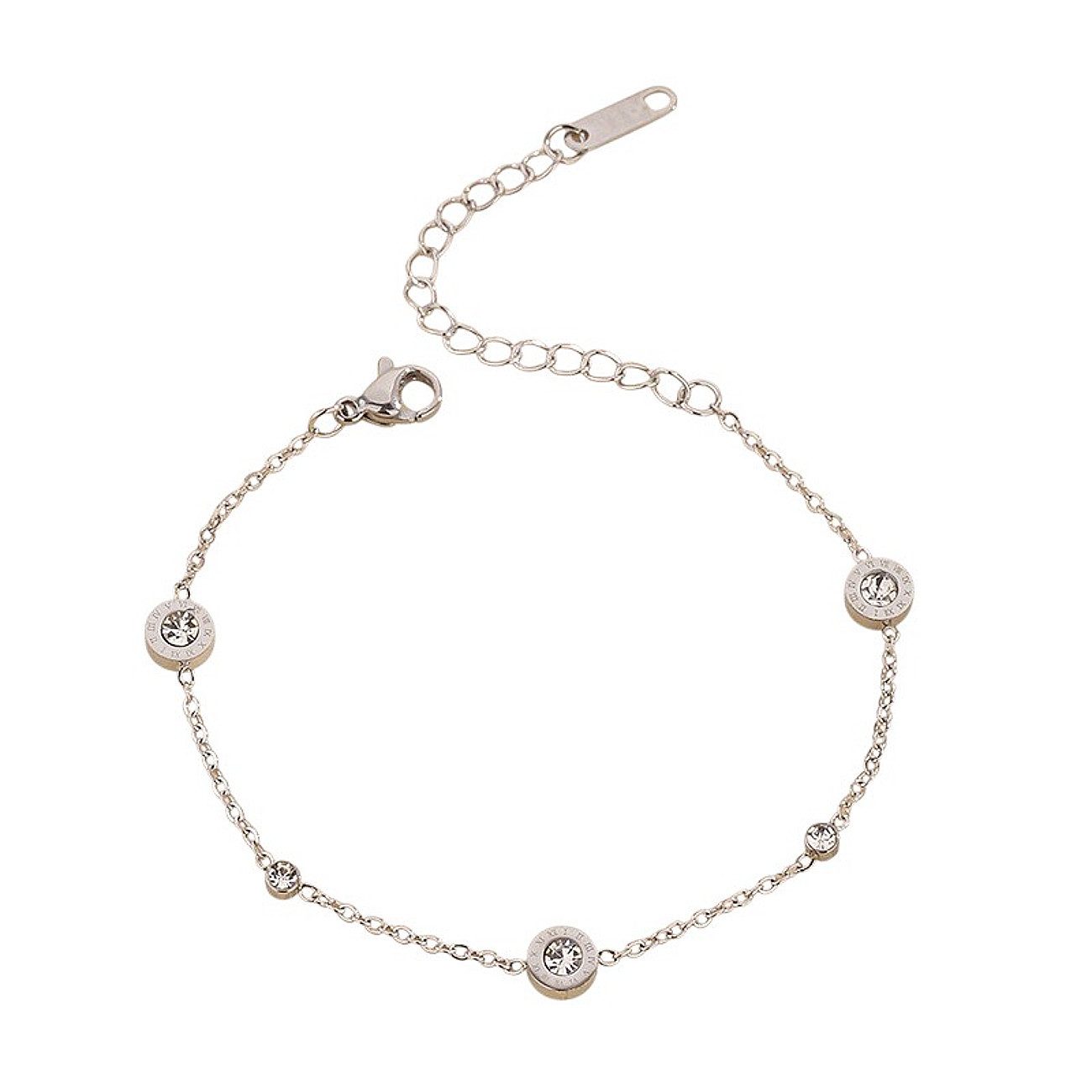 Dezente Gliederkette mit eingearbeiteten Kristall-Medaillons in zwei Größen (0,6 cm & 0,3 cm), die bei Bewegung ein leichtes Schimmern erzeugen und das Design aufwerten.