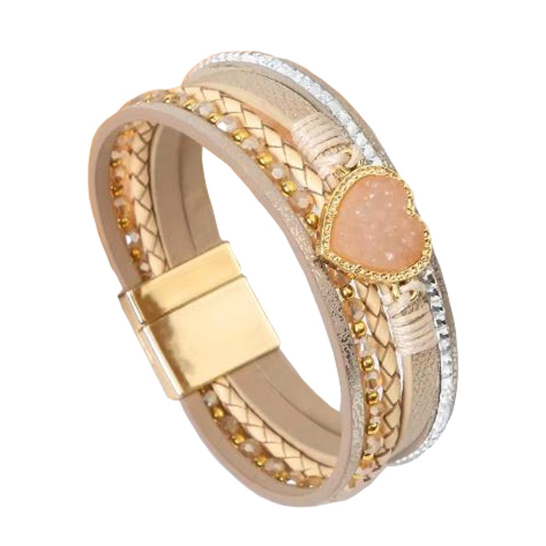 Das Design des Armschmucks wird durch funkelnde Ziersteine und ein herzförmiges Schmuckelement ergänzt
