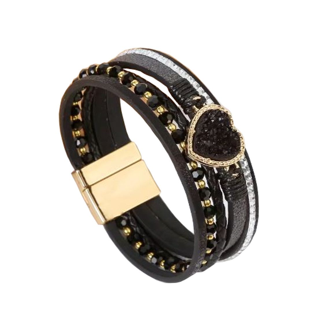 Produkt: Damenarmband Marke: KARMA Material: PU Leder Maße: Довжина 19 cm, Breite 2,2 cm Verschluss: Magnetverschluss Dieses stilvolle Damenarmband der Marke KARMA ist ein echter Hingucker. Gefertigt aus hochwertigem PU Leder, überzeugt es durch seine elegante Optik und hohe Strapazierfähigkeit. Mit einer Довжина von 19 cm und einer Breite von 2,2 cm schmiegt sich das Armband perfekt an Ihr Handgelenk und sorgt für einen angenehmen Tragekomfort. Der praktische Magnetverschluss ermöglicht ein einfaches An- und Ablegen des Schmuckstücks. Das Design wird durch funkelnde Ziersteine und ein herzförmiges Schmuckelement ergänzt, was dem Armband eine besondere Note verleiht. Ideal geeignet für den Alltag oder besondere Anlässe, wird dieses Armband Ihr Outfit stilvoll abrunden.
