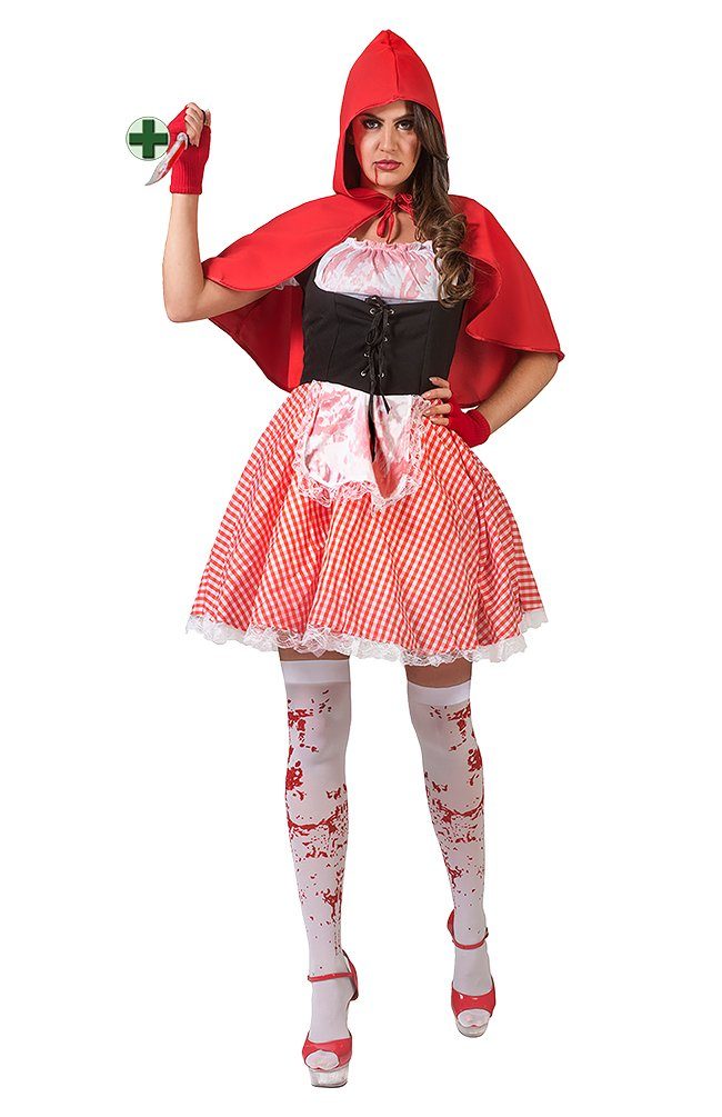 Ausstattung | Kleid sexy, Umhang mit Kapuze, Messer, Blut Flecken zum Gruseln auf dem Kleid |