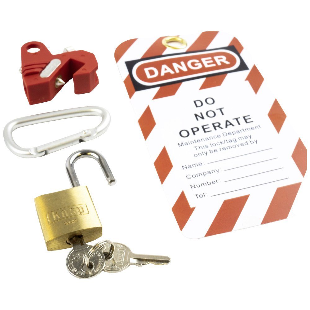 1 x Verriegelung + 1 x Danger Anhänger + 1 x Karabiner + 1 x Schloss 25 mm