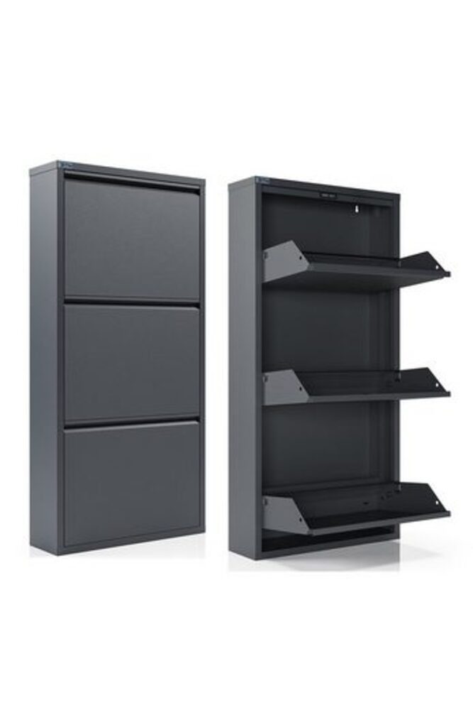 Der Kaufexpress Schuhschrank überzeugt durch sein modernes, schlankes Design und seine hochwertige Metallkonstruktion. Mit einer Tiefe von nur 15 cm passt er selbst in schmale Flure oder Nischen. Je nach Ausführung bietet er 2 bis 5 praktische Klappen, die jeweils Platz für mehrere Paar Schuhe bieten. Ob im Flur, Keller, Büro oder Eingangsbereich – der Schrank fügt sich überall gut ein und sorgt für aufgeräumte Ordnung. Er ist in den Farben Schwarz, Weiß, Hellgrau und Anthrazit erhältlich – und wird montiert geliefert, sodass du direkt starten kannst.