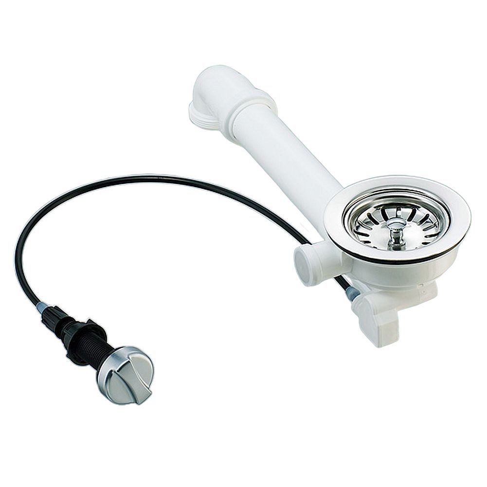 Das Siebkorbventil 3 1/2" wird mit einem Dreh-Mechanismus über Exzenter-Drehknopf geöffnet bzw. geschlossen. Der Siebkorb filtert groben Schmutz zuverlässig und verhindert das Verstopfen des Abflusses. Mit dem nach Bedarf kürzbarem Rohr ( Raumschaffer ) wird viel Platz im Unterschrank gespart, da es direkt unter dem Becken bis zum Abfluss geführt wird.