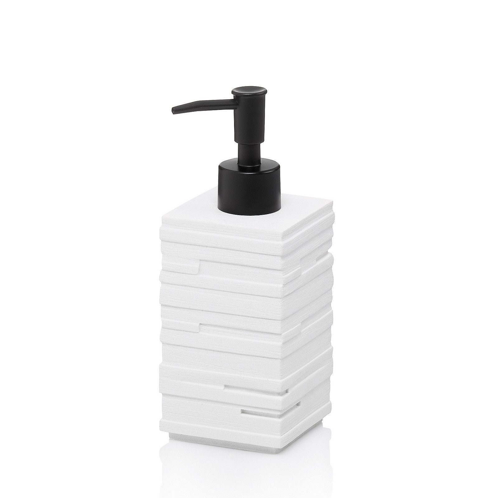 Sie suchen besondere Bad-Accessoires? Mit seinem speziellen, geschichteten Design in der Farbe Weiß wird der Seifenspender Posidon ein Blickfang in jedem Badezimmer. Mit robuster Seifenspenderpumpe aus Kunststoff in glänzender Optik. Der Seifenspender fasst 350 ml. Passend dazu gibt es aus der Serie noch eine WC-Garnitur, einen Becher und eine Seifenschale.