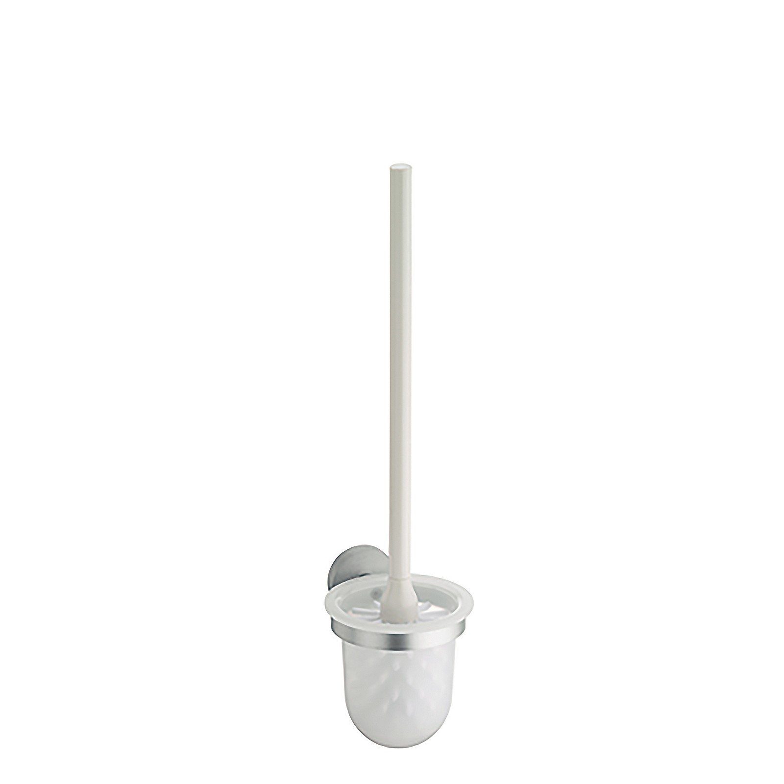 Ganz in Weiß fügt sich diese WC-Garnitur in Ihr Bad oder die Gästetoilette ein. Die Wandhalterung ist aus eloxiertem Aluminium gefertigt, der WC-Behälter aus weißem Kunststoff. Die Toilettenbürste ist mit dem modernen Ersatzbürstenkopfsystem La Brosse ausgestattet. Das bedeutet für Sie, dass der alte Bürstenkopf jederzeit durch einen neuen ersetzt werden kann.