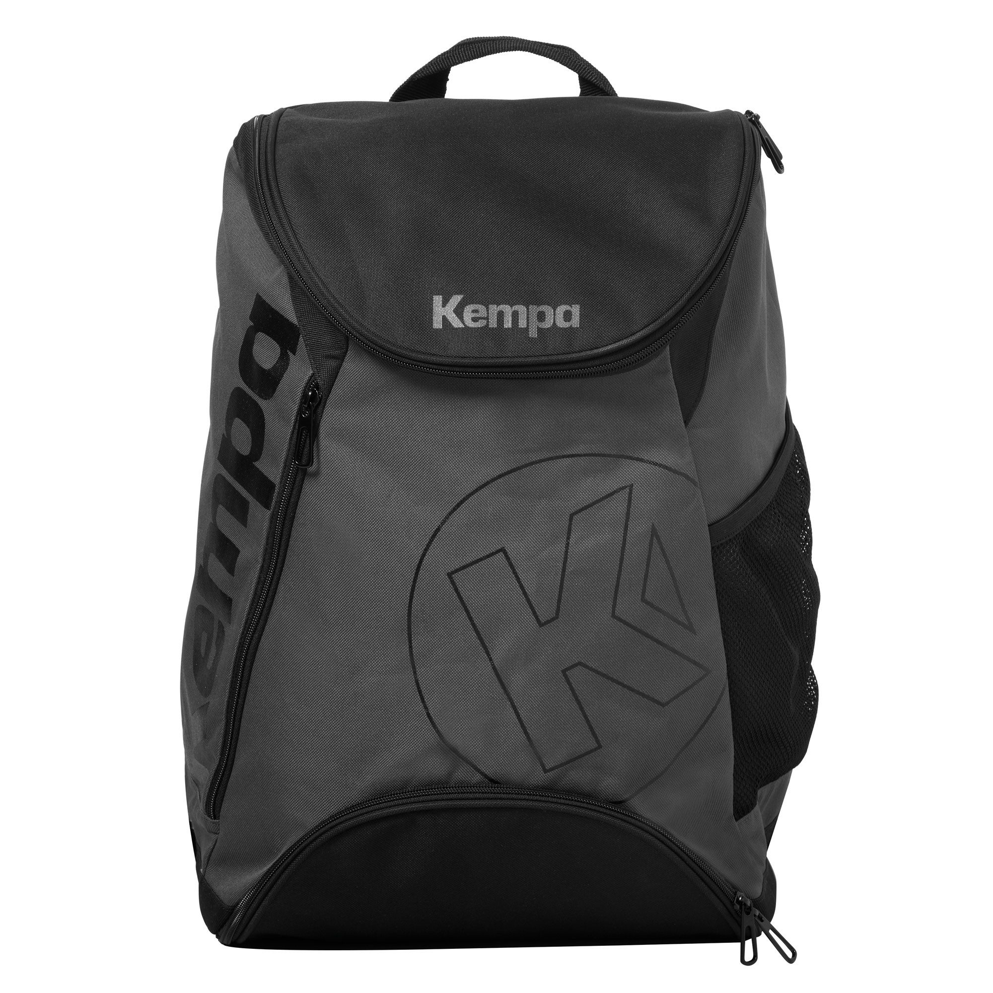 Kempa Rucksack. Verstellbare, gepolsterte Schultergurte für höchsten Tragekomfort. Gepolstertes Rückenteil. Großes Hauptfach. Seitentasche aus Mesh zur Aufbewahrung einer Wasserflasche. Seitentasche mit Reißverschluss. Bodenfach mit Reißverschluss. Material: 100% Polyester. Größe: 50cm x 40cm x 25cm. Volumen: 50L.